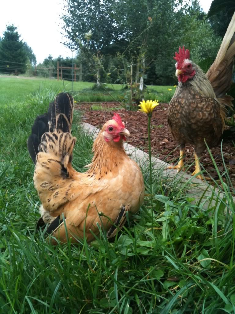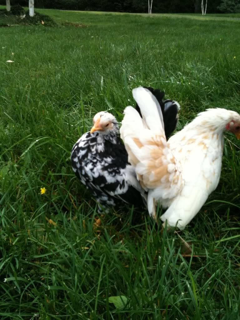 Here are a couple pics of my Seramas. They come in every color imaginable. I wish there was something (other than that dandelion) in the pictures for scale. That black & white mottled hen is only about as tall as a pop can.