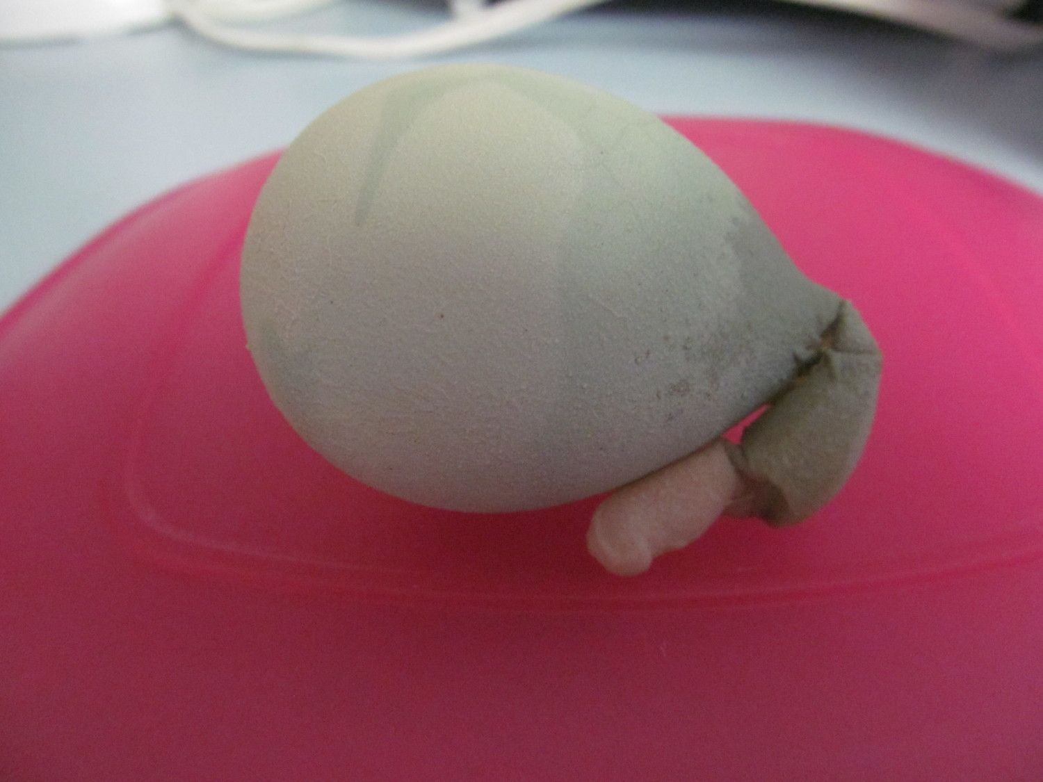I have 3 new 7 month old hens that are with my existing flock. They free range and have food and shell available. The new hens started laying a week or 2 ago. Yesterday I found someone had laid an egg with no shell. Ok...that happens and I am pretty sure it was one of the new girls because the egg was small. Today I found this strange egg. Has anyone ever gotten one like this before? Kind of looks like a balloon!