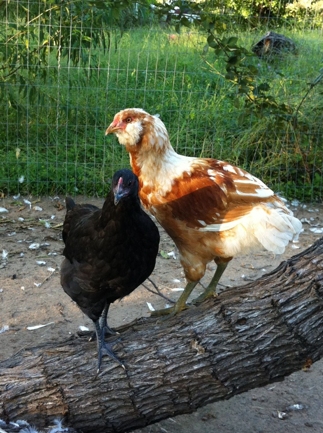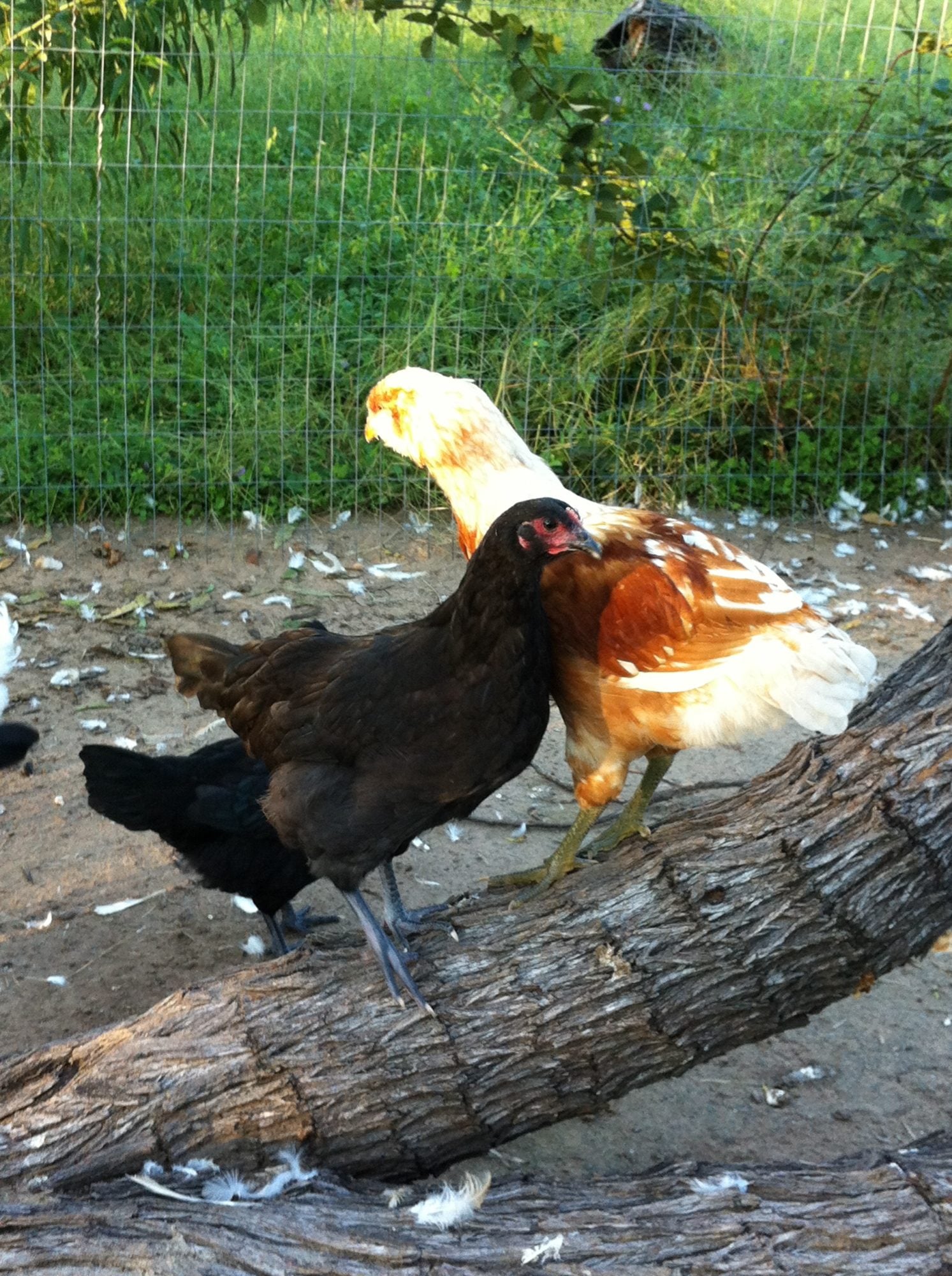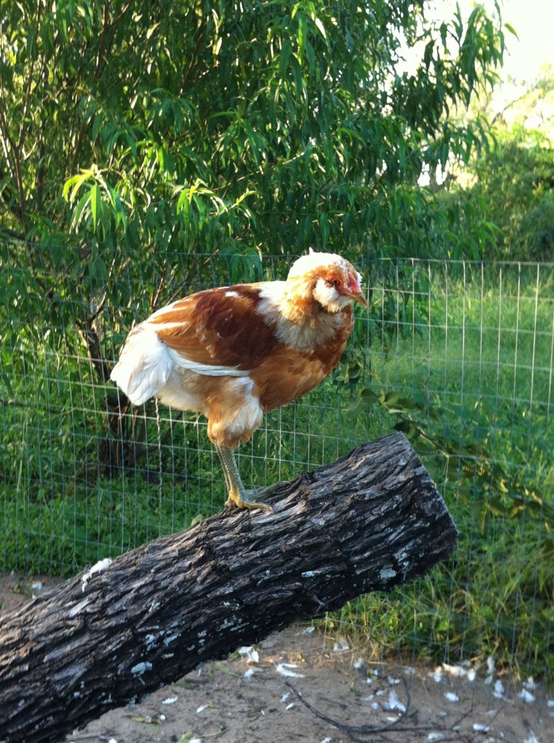 These 3 shots were taken last Sunday afternoon. That would put (him/her/it) at 22 weeks, since I received them May 15th. It still has only a tiny tail, but i love the little beard It has. So far none of this new batch have laid any eggs yet. The 2nd and 3rd shot have it with some of the Australorps i got in the same order. Please don't worry about all the feathers all over. My leghorns from last spring are molting like crazy!