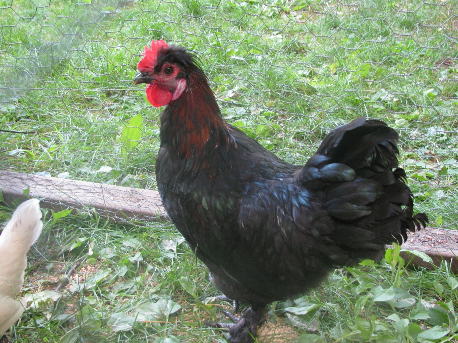 Someone said possibly creveceour. But that was before he had his red hackles coming in. He has lots of green and a little purple sheen all over, and red starting to come in on his shoulders as well that I'm not sure will come out well in the pictures.