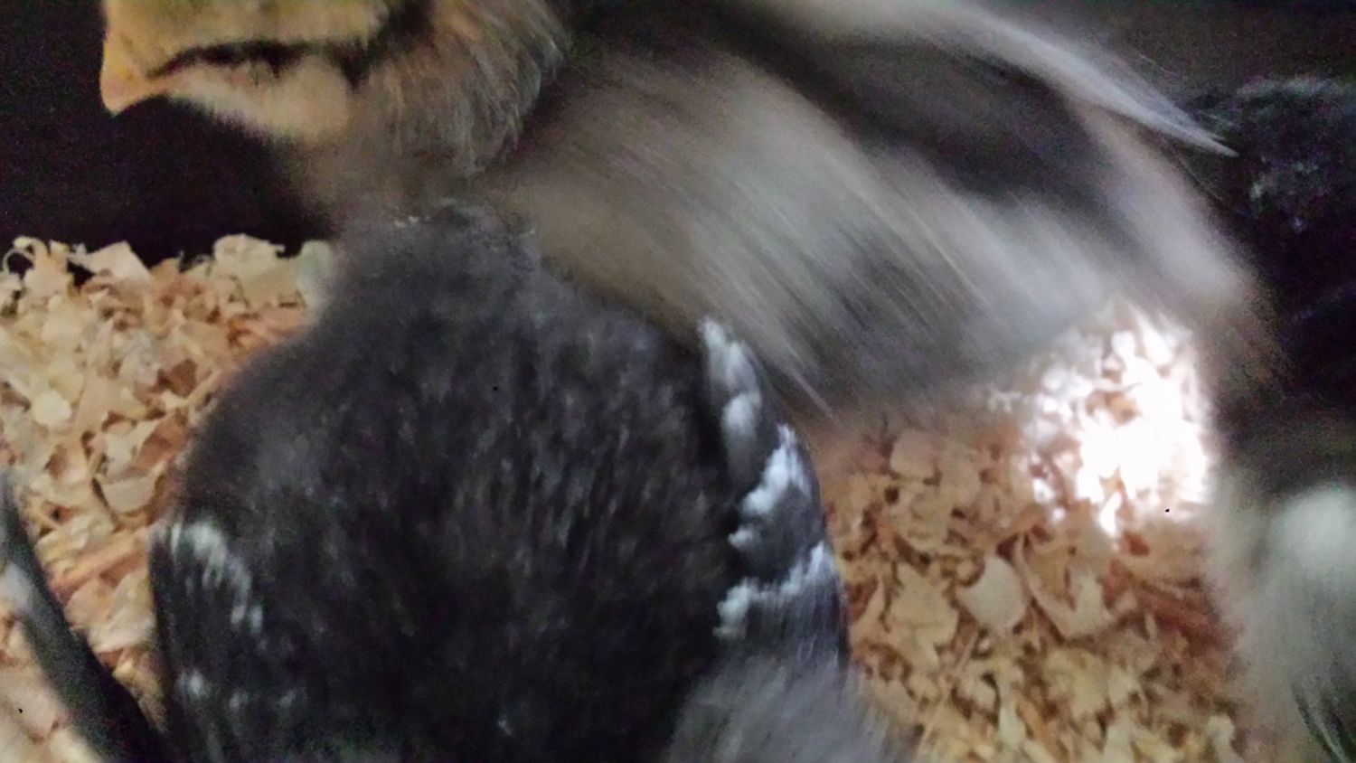 This is the chick in question, sorry I dont have a better headshot, but I'll get one tomorrow. She now has a full tail and there is single barring there. Also Im hoping she is still a she, she has a very tiny comb but larger looking legs than my australorps (who have no combs) and EE.