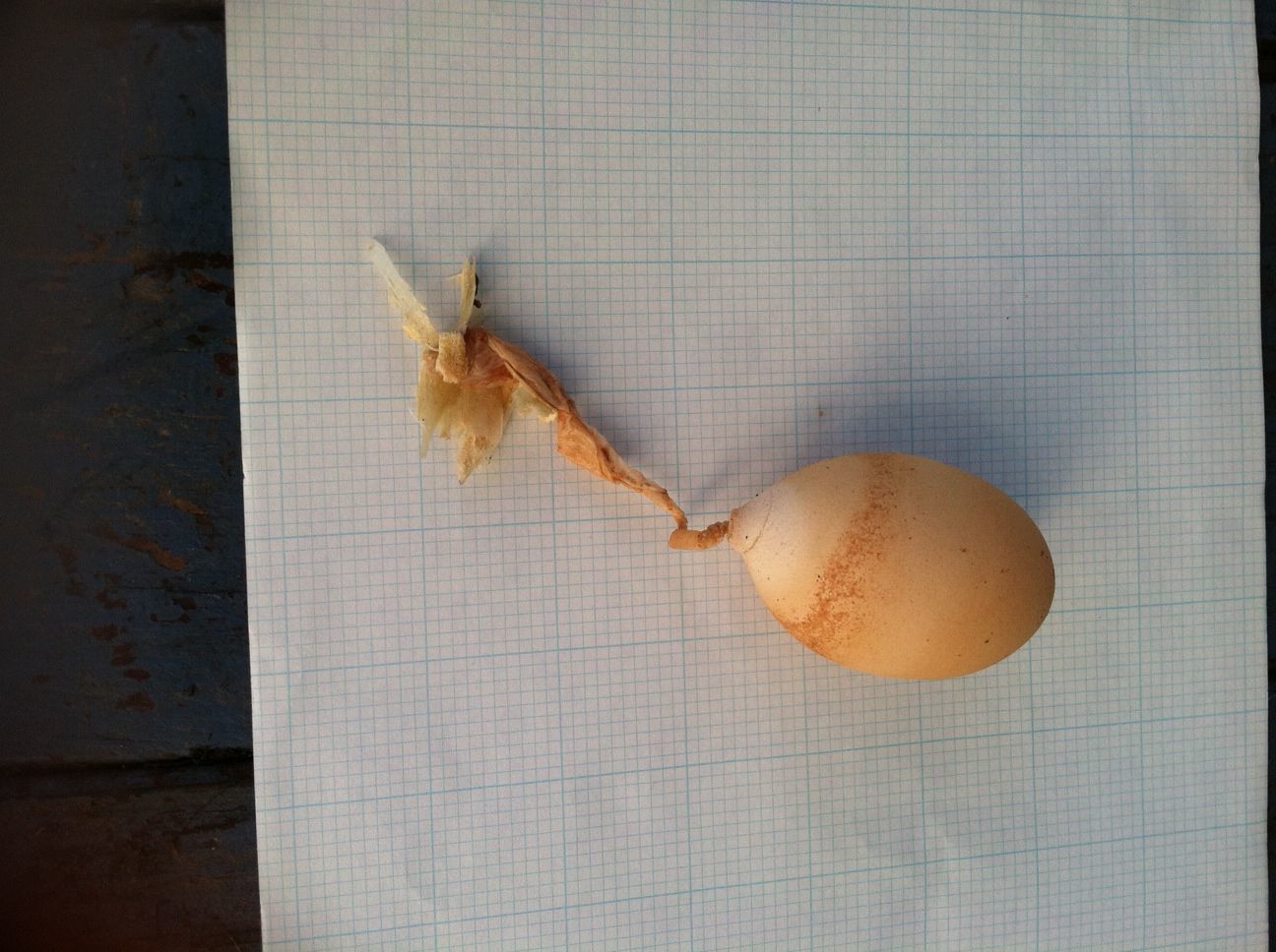 Found this egg in a nesting box early this morning. Has a strange membrane as a sort of "tail". Want to make sure one of my chickens isn't ill. Thanks