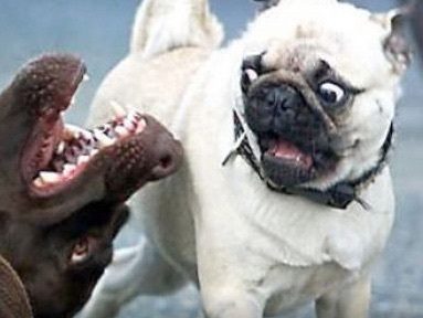 LittleBrownie said: What's this pug thinking? Click to expand... "What the heck is wrong with you?! I'm just walking here!!!" That's what my pug, Chester sounds like when my Australian Shepard mutt, Molly attacks him for fun.