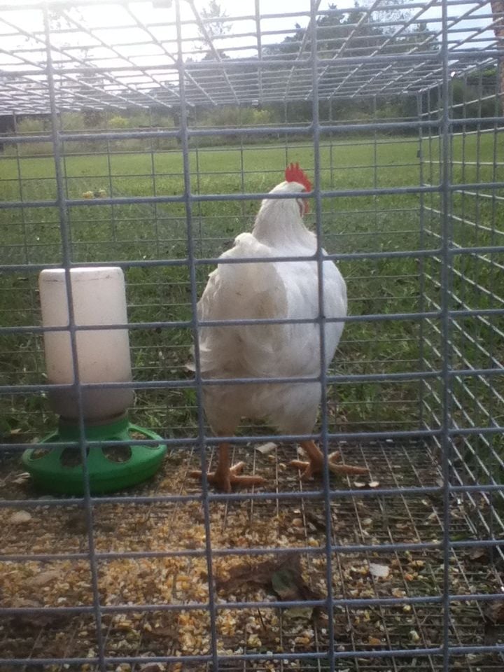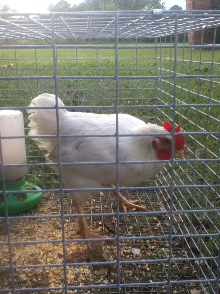 Could be a non-show quality White Rock, as, though the breed/variety is supposed to be white, many white birds have some black in them. Or he (yes, it is a cockerel) could be a mix of some sort.