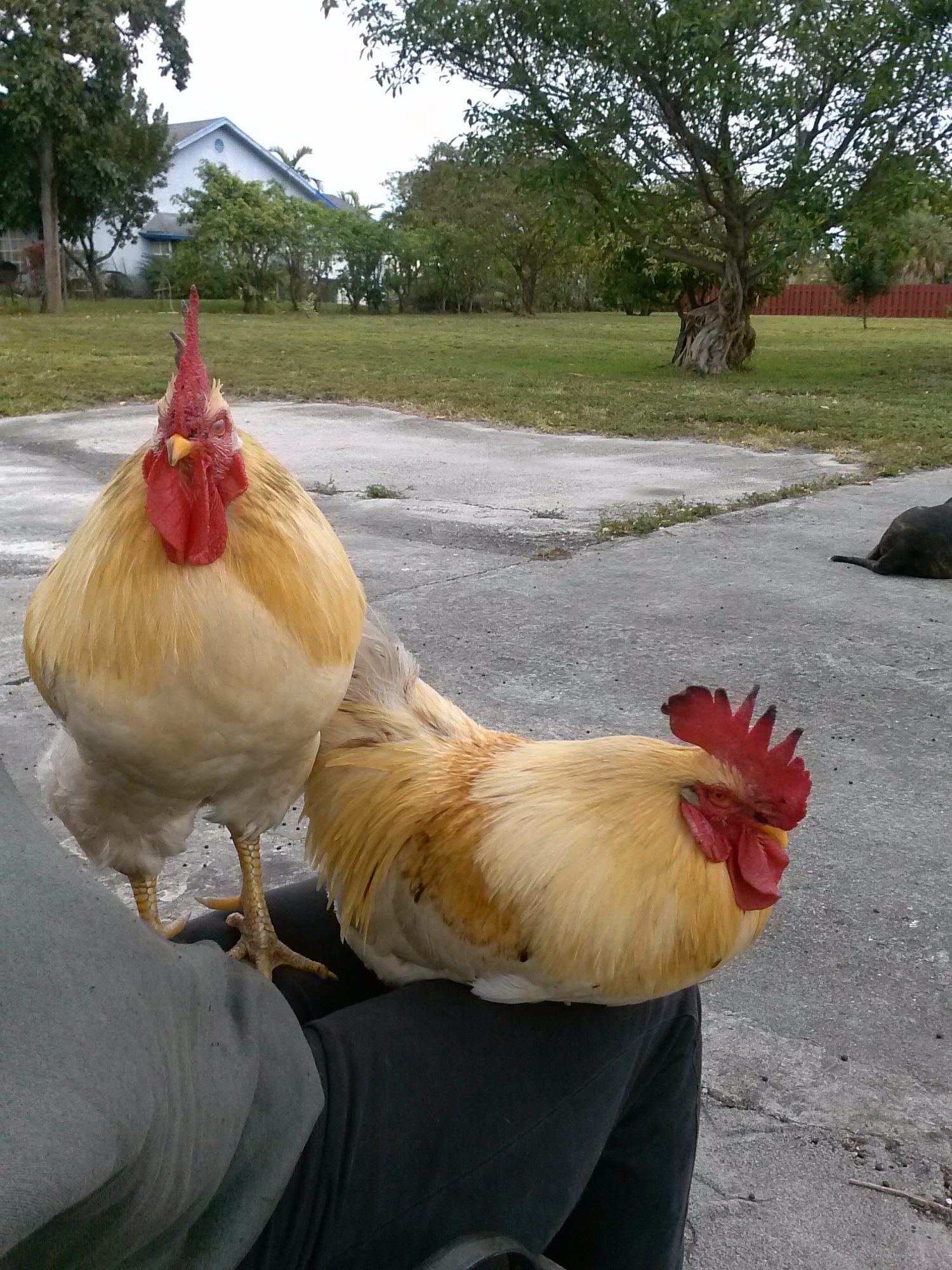 (But seriously, I hope everyone who lives nearby thinks they are an adorable duo like I do.) I live in the city and chickens are not allowed. thankfully in this corner everybody has a big yard, and so far I have had no complaints from my neighbors. I got two baby chicks 3 years , and go figure they turned out to be roosters. But I love them two like crazy