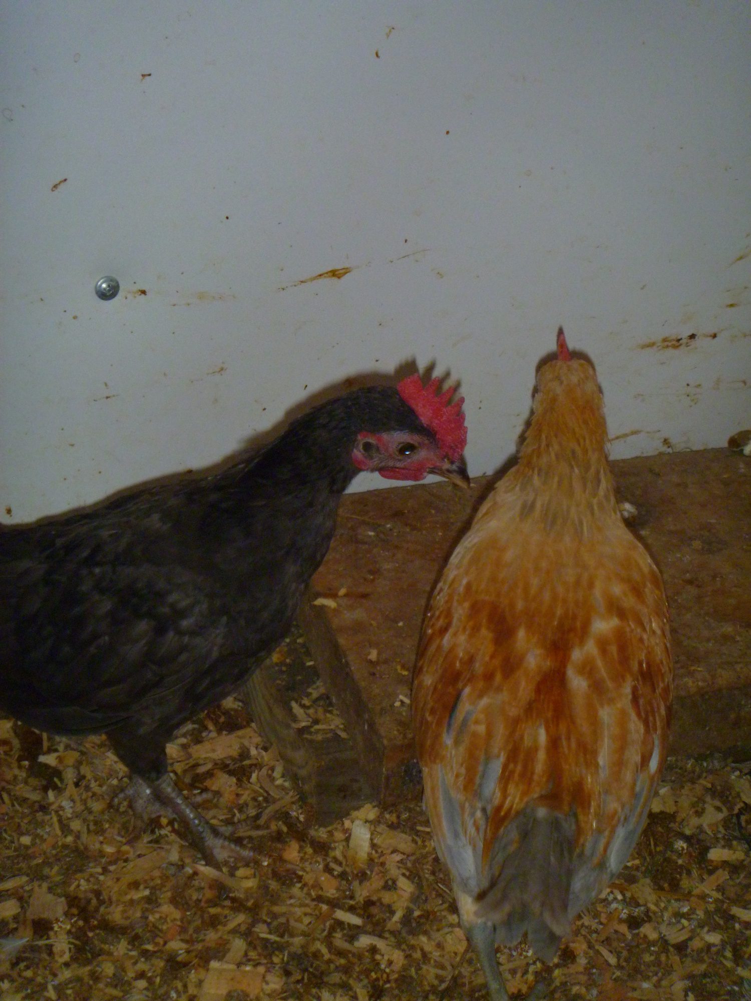 "Emma, I TOLD you not to sit under the roost or you'll get egged! But you didn't listen, nope nope nope."