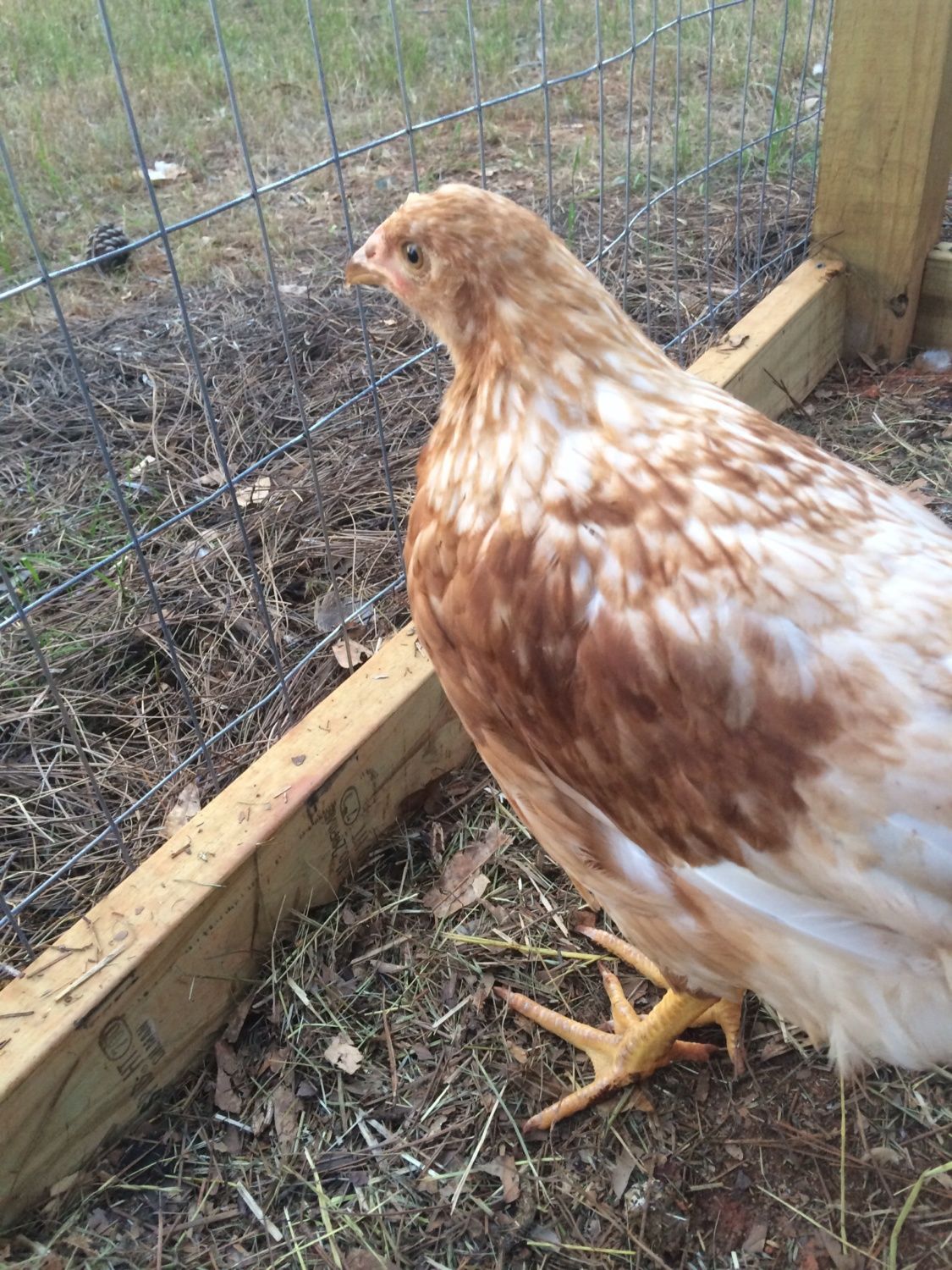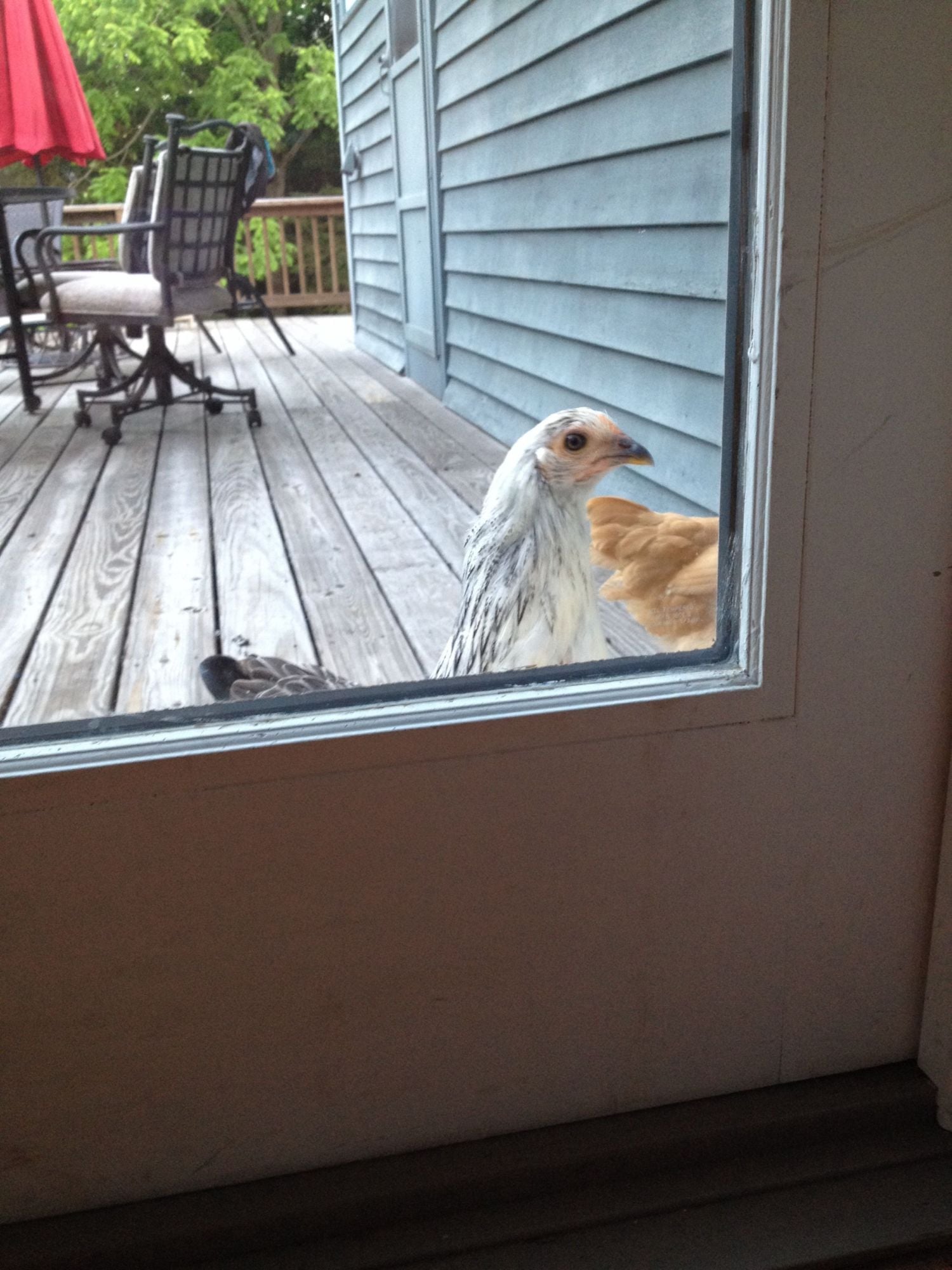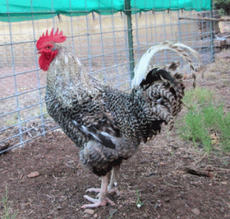 Our sweet Cuckoo Marans roo that we rescued. He's recovering from a heavy lice infestation and malnutrition. What is Shanti thinking?