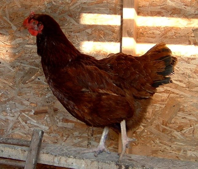 Day AFTER she she spent a few hours in a soapy bucket of water she fell into... got a cool rinse and a night inside with the heat lamp since I don't have a blow dryer. When I found her she was barely responsive. I turned her beak down, massaged her crop and bounced her beak on the deck slapping her side until she spit some up. Photo is next day after I let her back out and then started to walk toward her on the roost in the middle of the day.