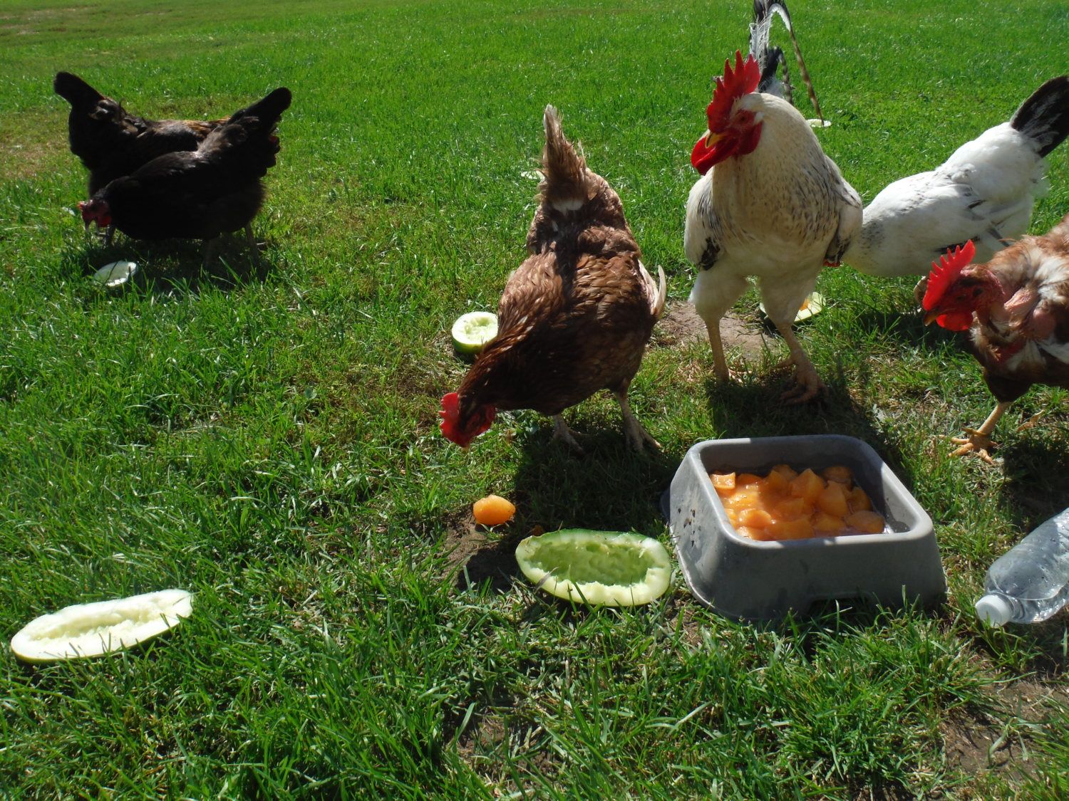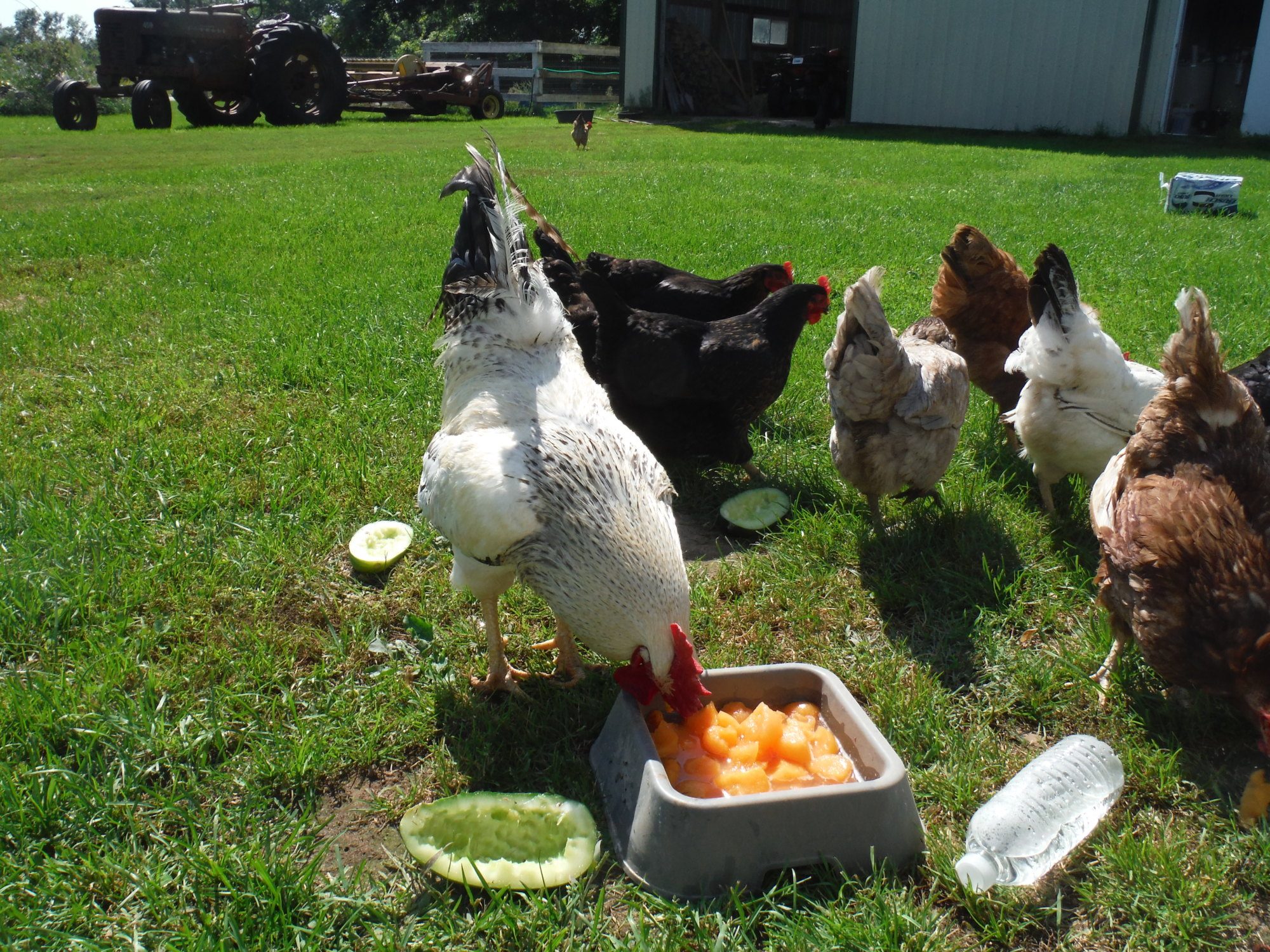 First Photo: two chickens on left... thanks so much for letting me lay on your neck, sure wouldn't want to put my face in her armpit like the girls on the other end!