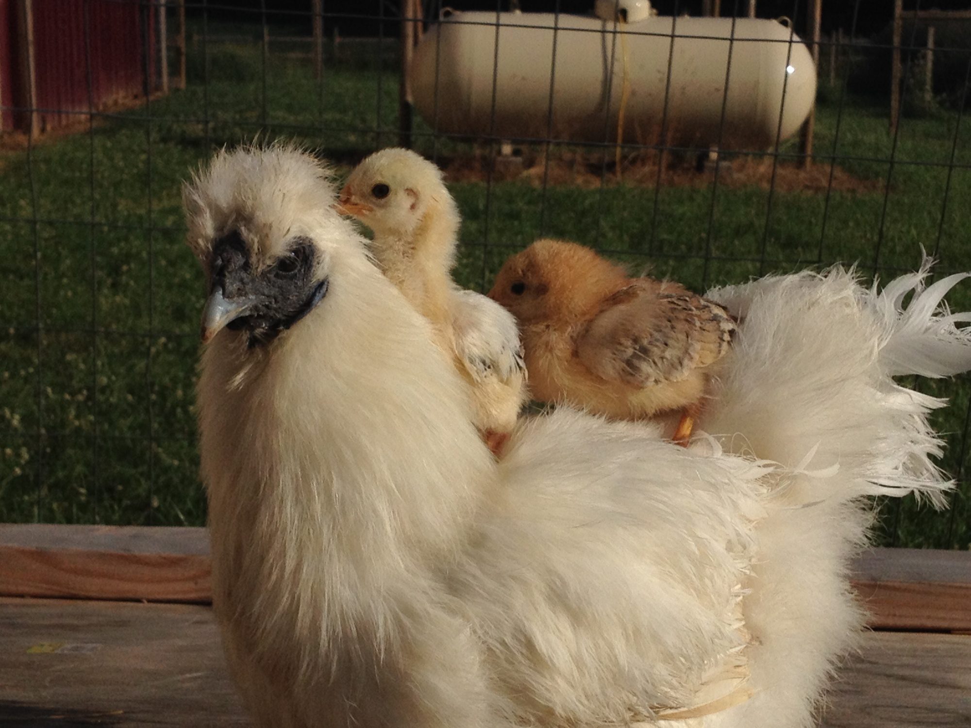 could be. They don't have any extra toes or dark skin. This is the first time I've had chickens. I love them. These little girls only lay about twice a week. Their eggs look almost pink.CCLs should lay blue eggs, wonder if you have polish crosses? They often have those cute small crests and should lay cream eggs (depending on what the other parent was). Silkie crosses are another you see pretty often, but they often have some of the other silkie traits, extra toes, darker skin etc.