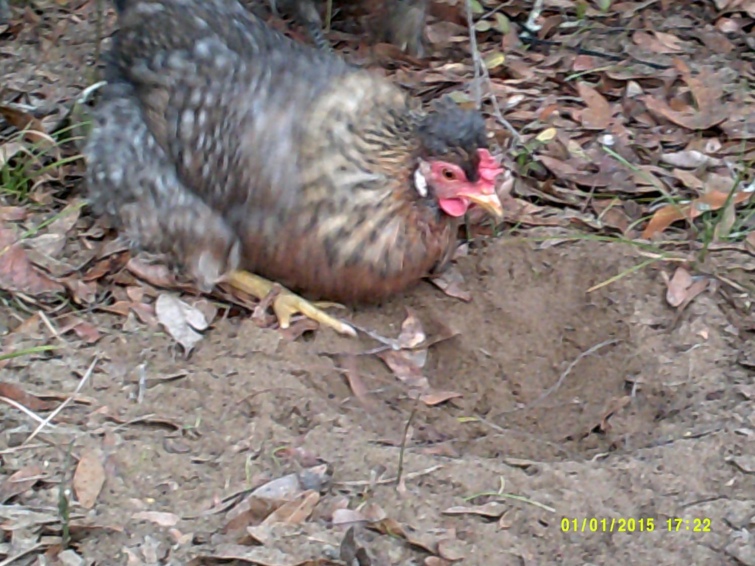 Geez....the nerve of Hilda!...Leaving her feathers in the dust bath hole!