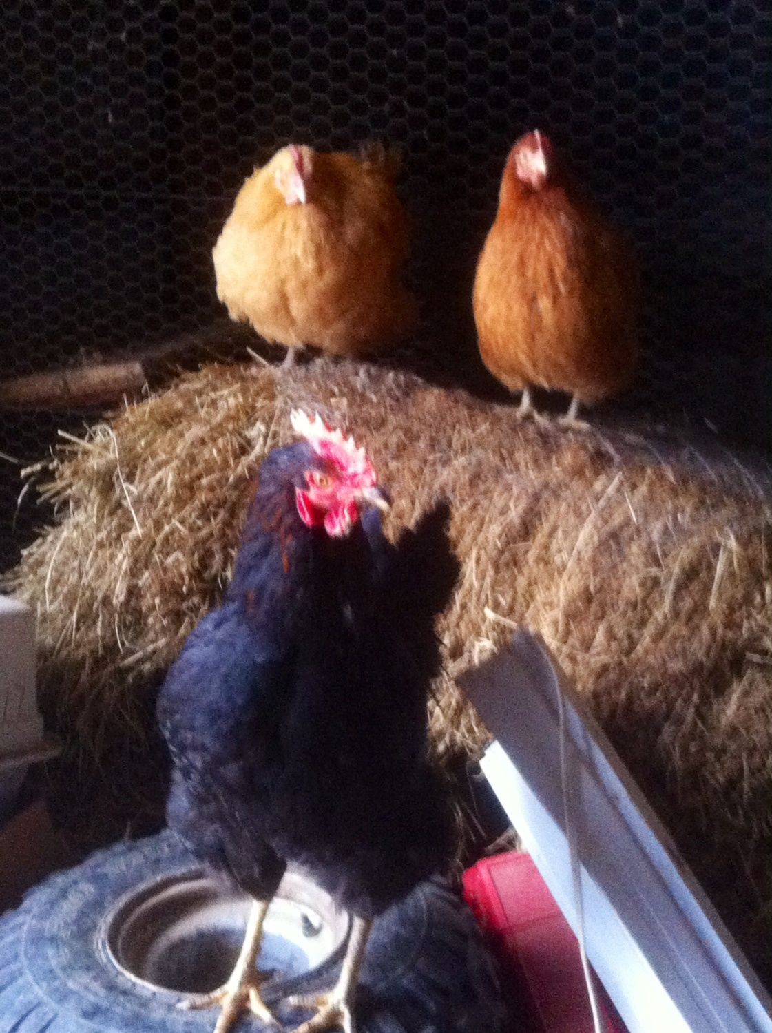 (hen on the left) Whoa! I swear I saw that cinder block move!!