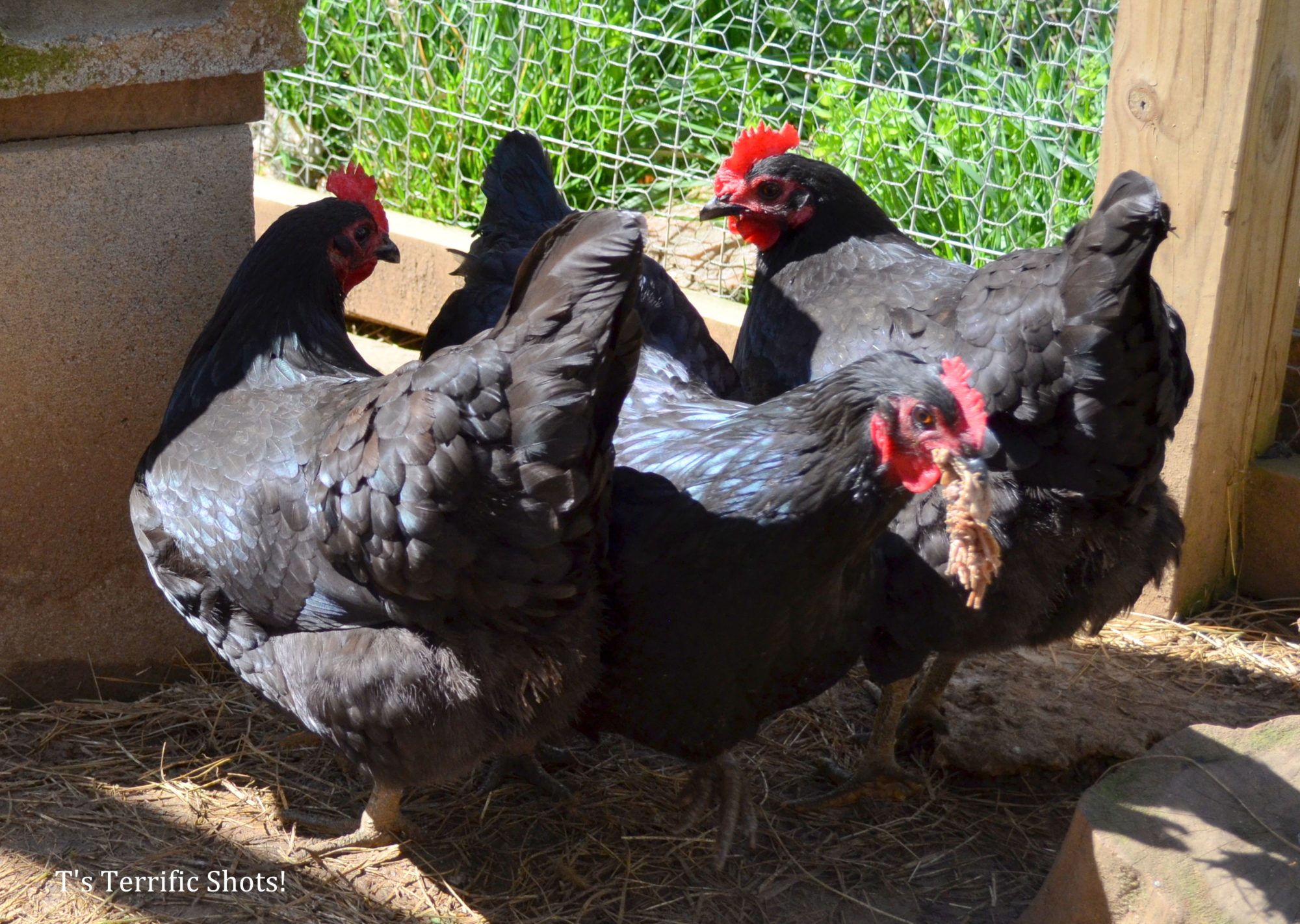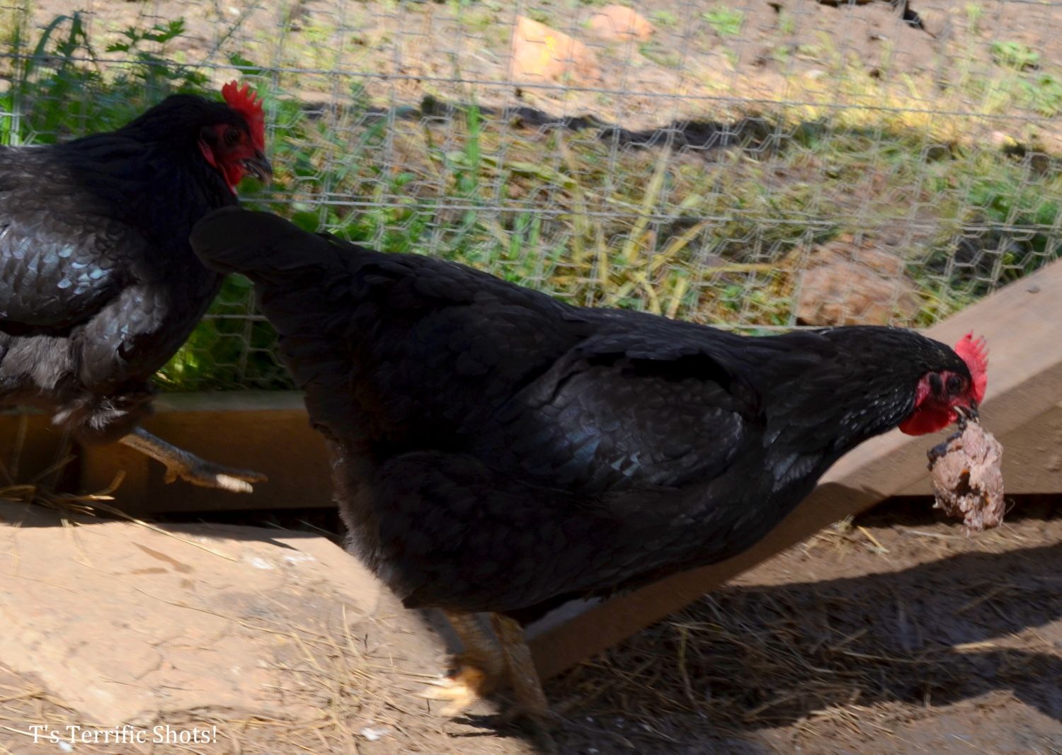 (hens whispering) Don't you just love when his wattles blow in the wind?