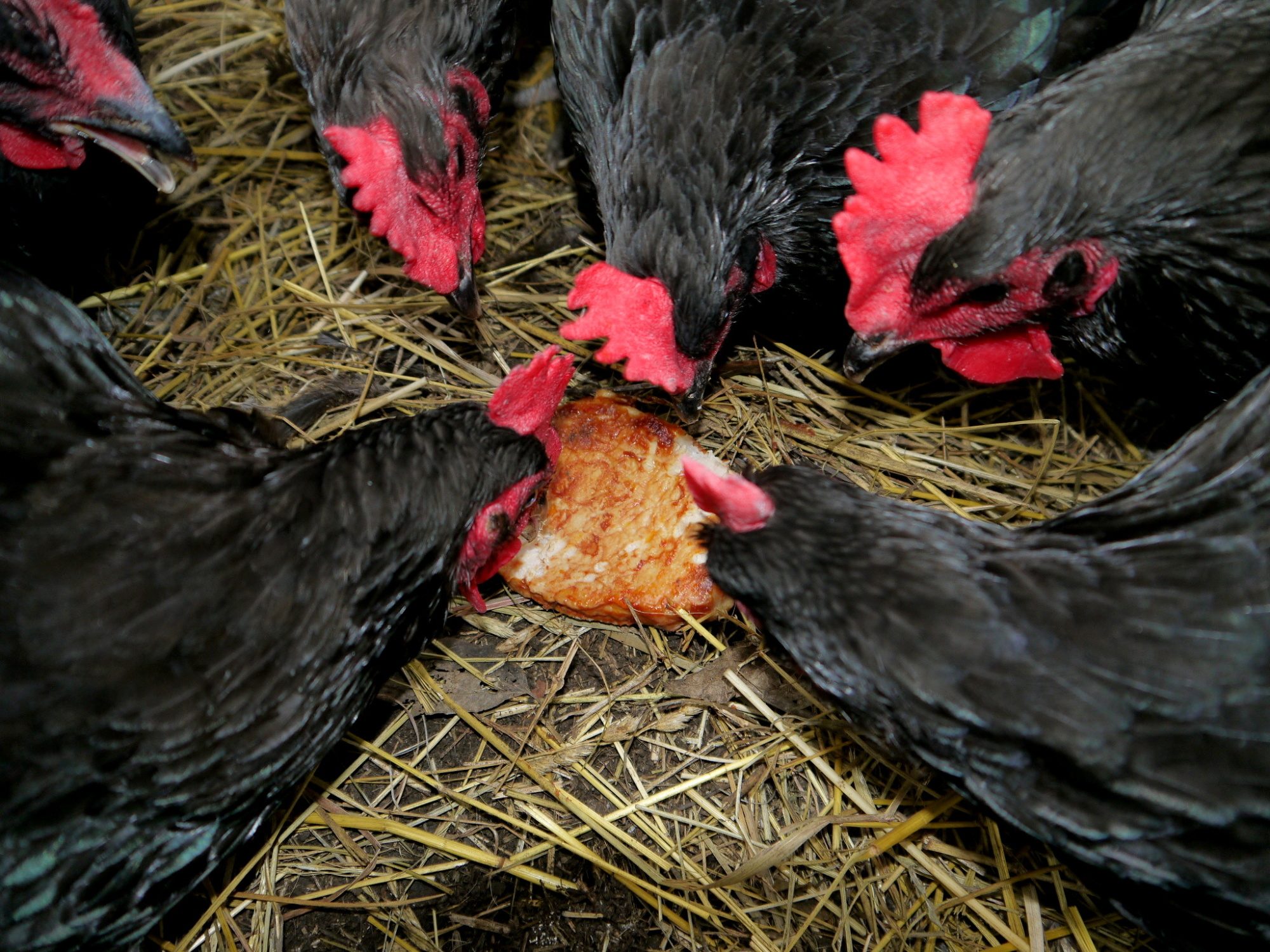 One hen…what is it? Another hen..don't know…2 eating …It's French toast!