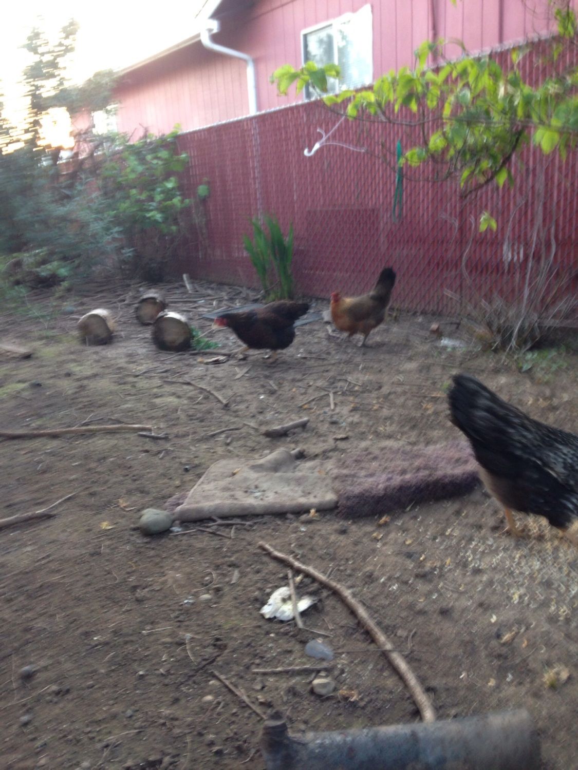 Ok so I was curious. There was a sale on fried chicken (if you're a vegetarian stop reading now because my hens aren't). I put one drumstick down and didn't have enough time to back up before the smack down began.