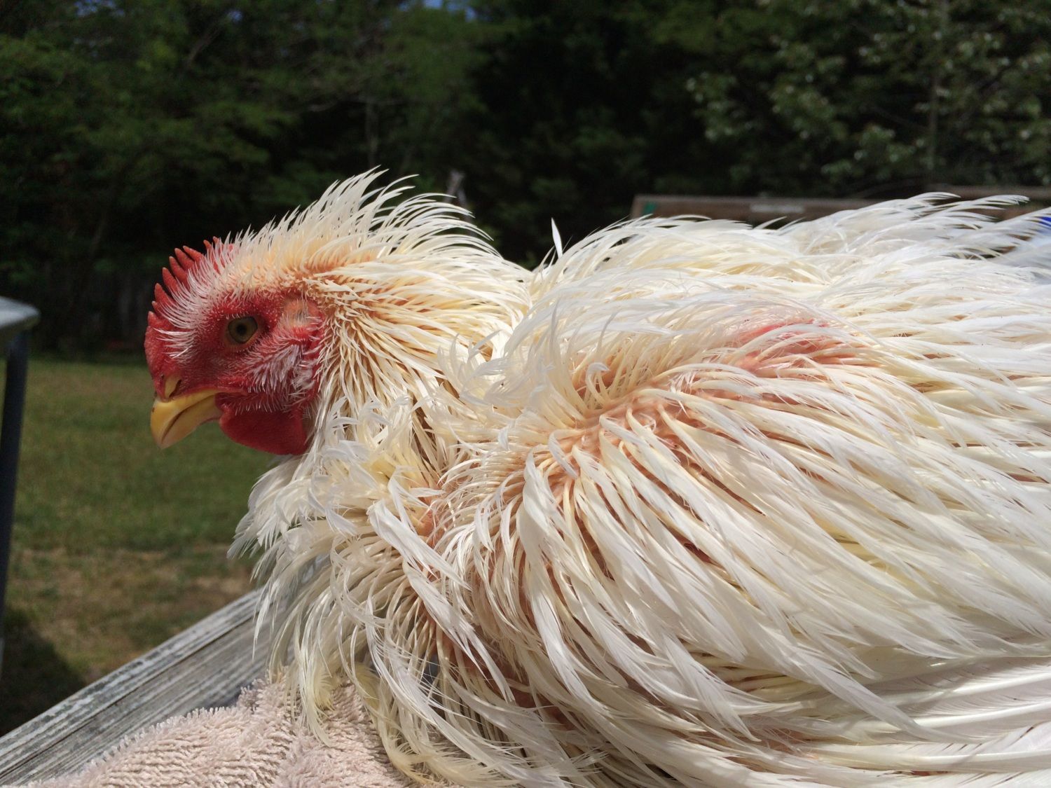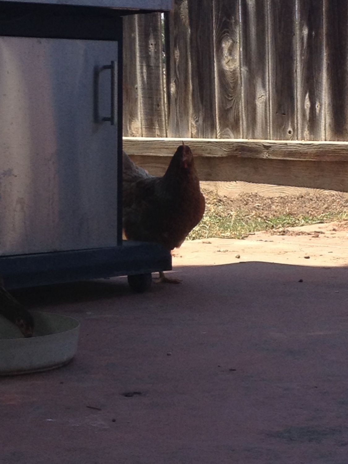 I go in the backyard to check on my hens, and this is what I see!! Sweet pea on top of fire rose and puddles!