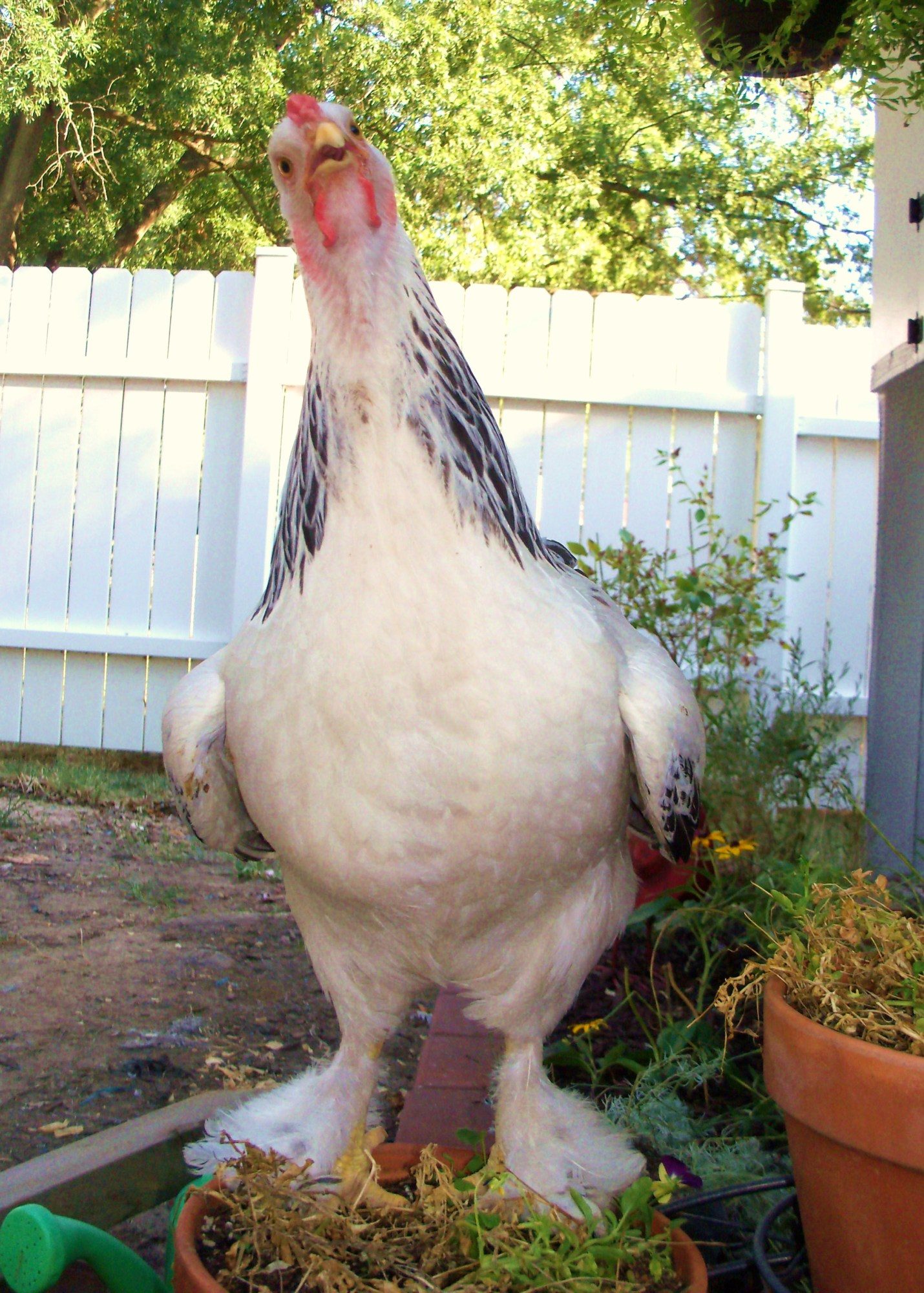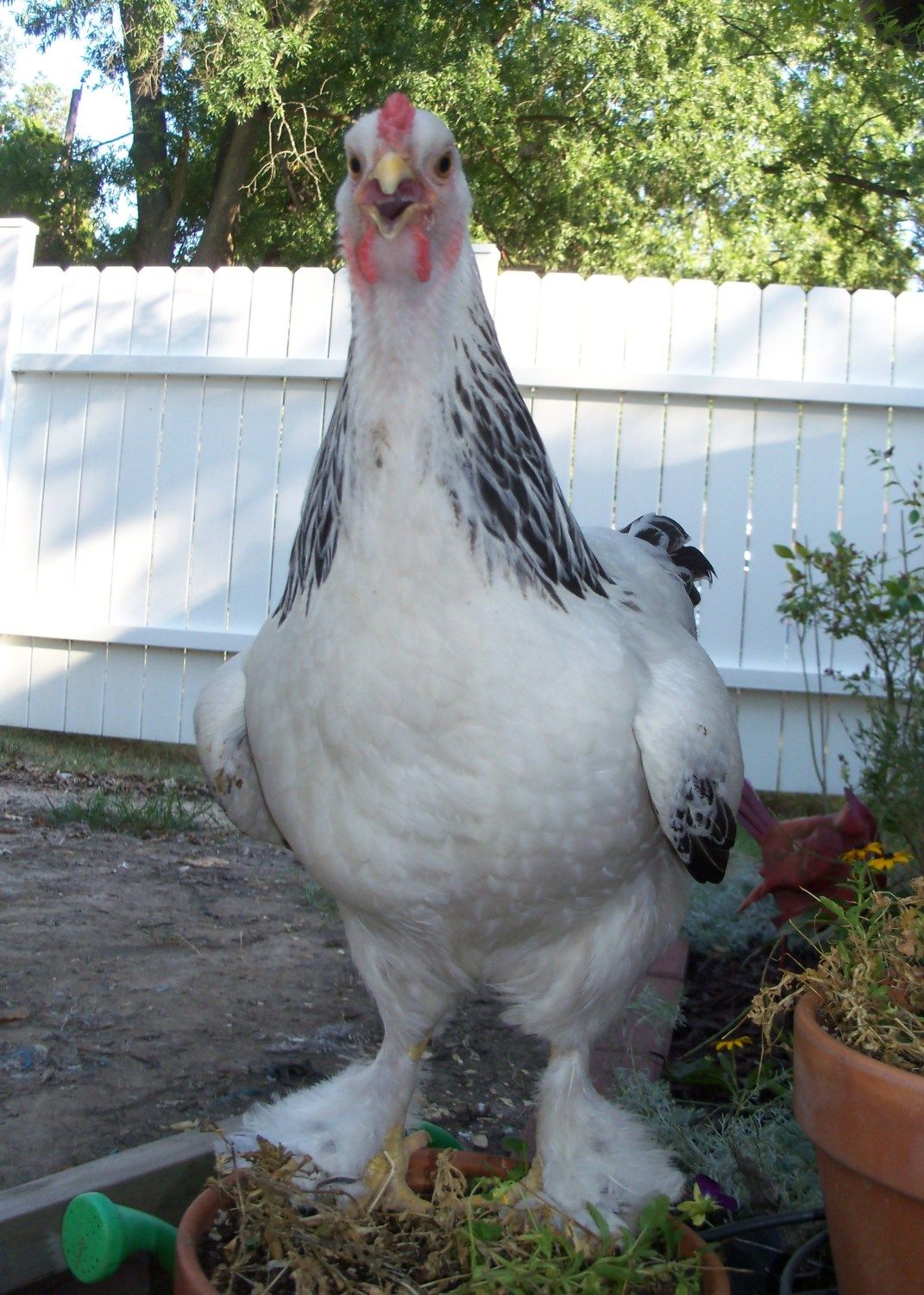 What is this pullet thinking? She had just laid her first egg in these pics. Poor thing went pale and dropped her wings for a while, but she recovered.