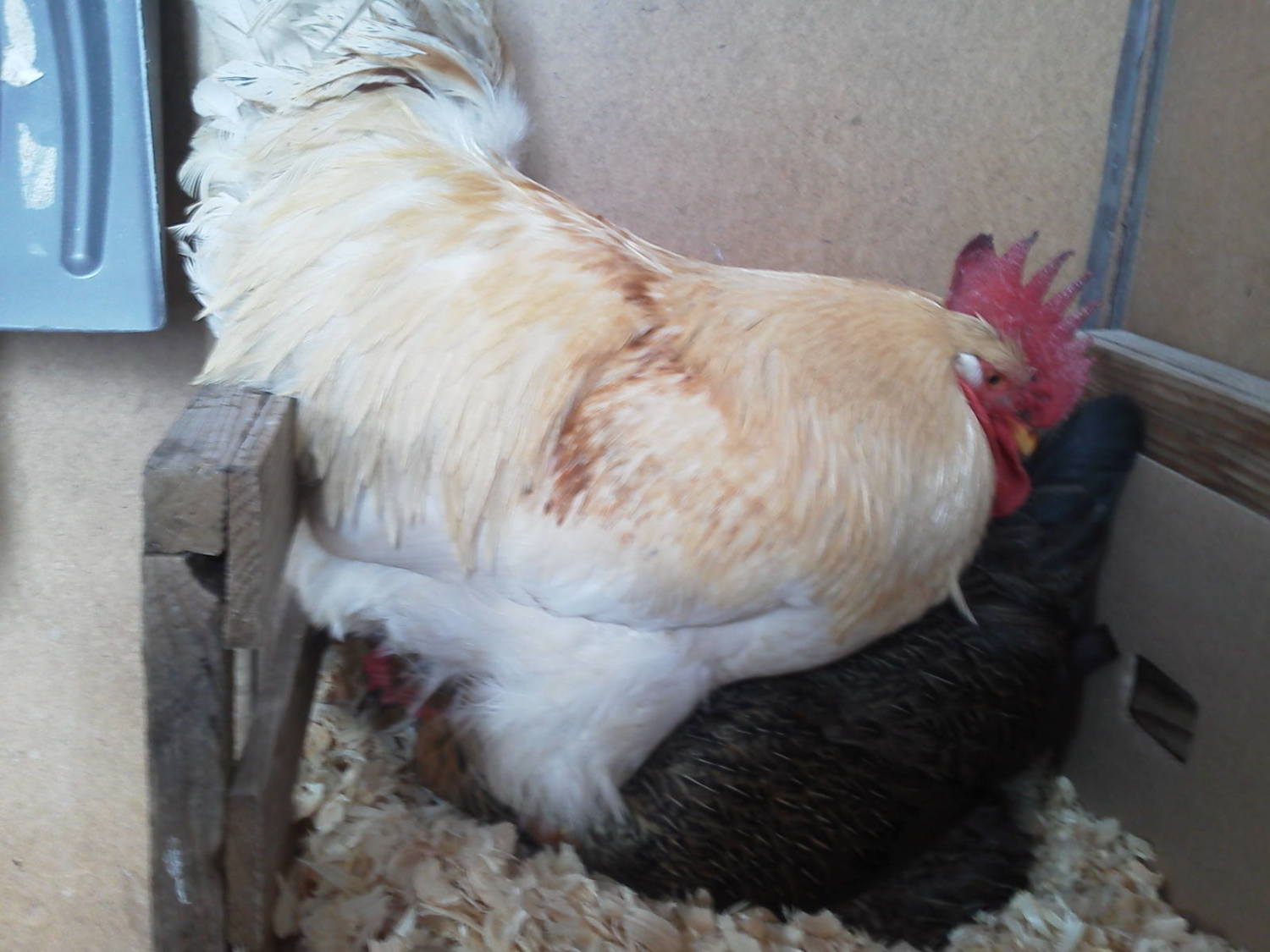 The chicken says, "Hold it right there. Don't move a muscle until I get a whiff too."