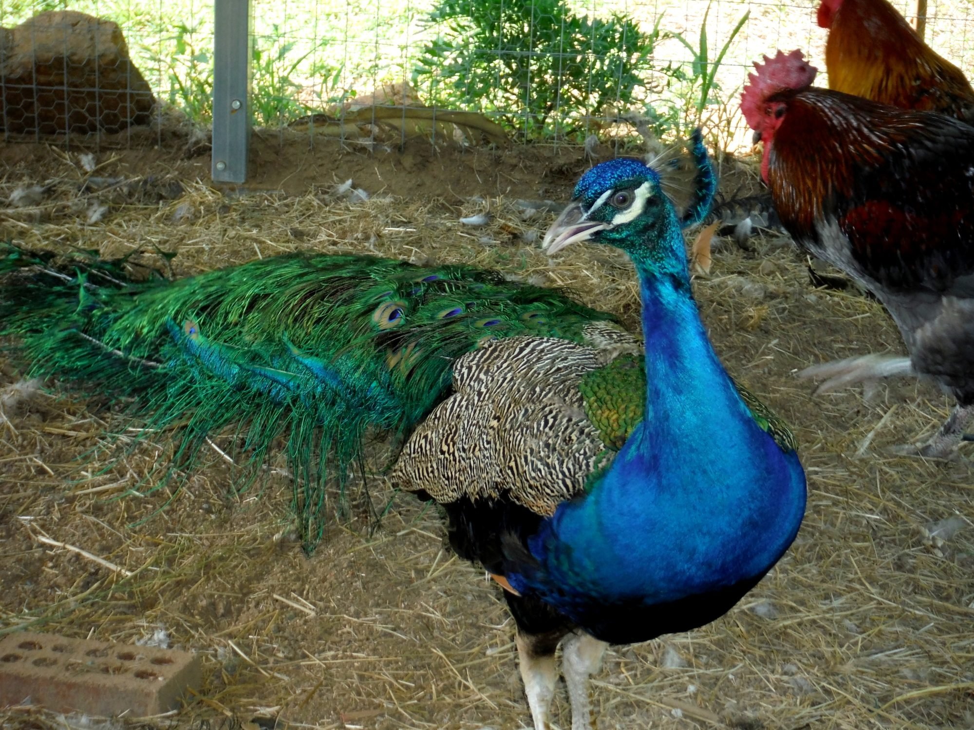 How to give your rooster an inferiority complex! Just borrow one of us Peacocks and those roosters won't crow for a week!