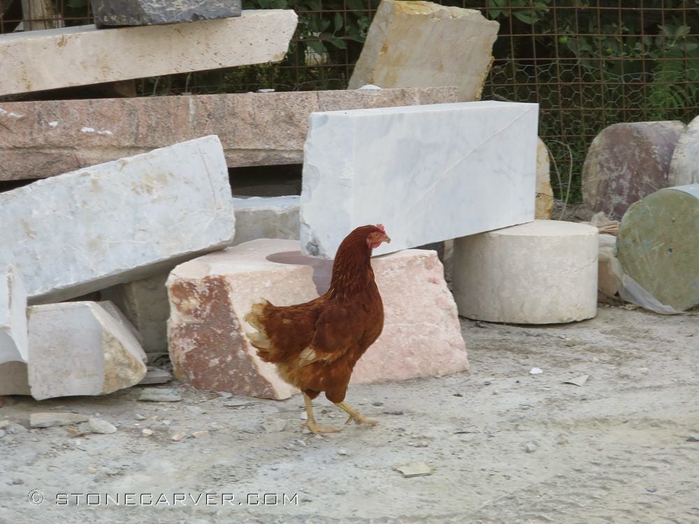 That's the piece of marble I want you to use to carve my likenessYes, I spend a lot of time there. Basically, I commute back and forth...That is amazing! I really must get myself to Tuscany....do you spend much ( if any ) time in Italy? Something tells me that you do! There are places in France that are similar to how you describe life for these people in Italy...I love rural life...!This chicken and her buddies have a long run behind a marble yard, with a hole in the fence so they can come and nibble on the marble dust. What is she thinking?