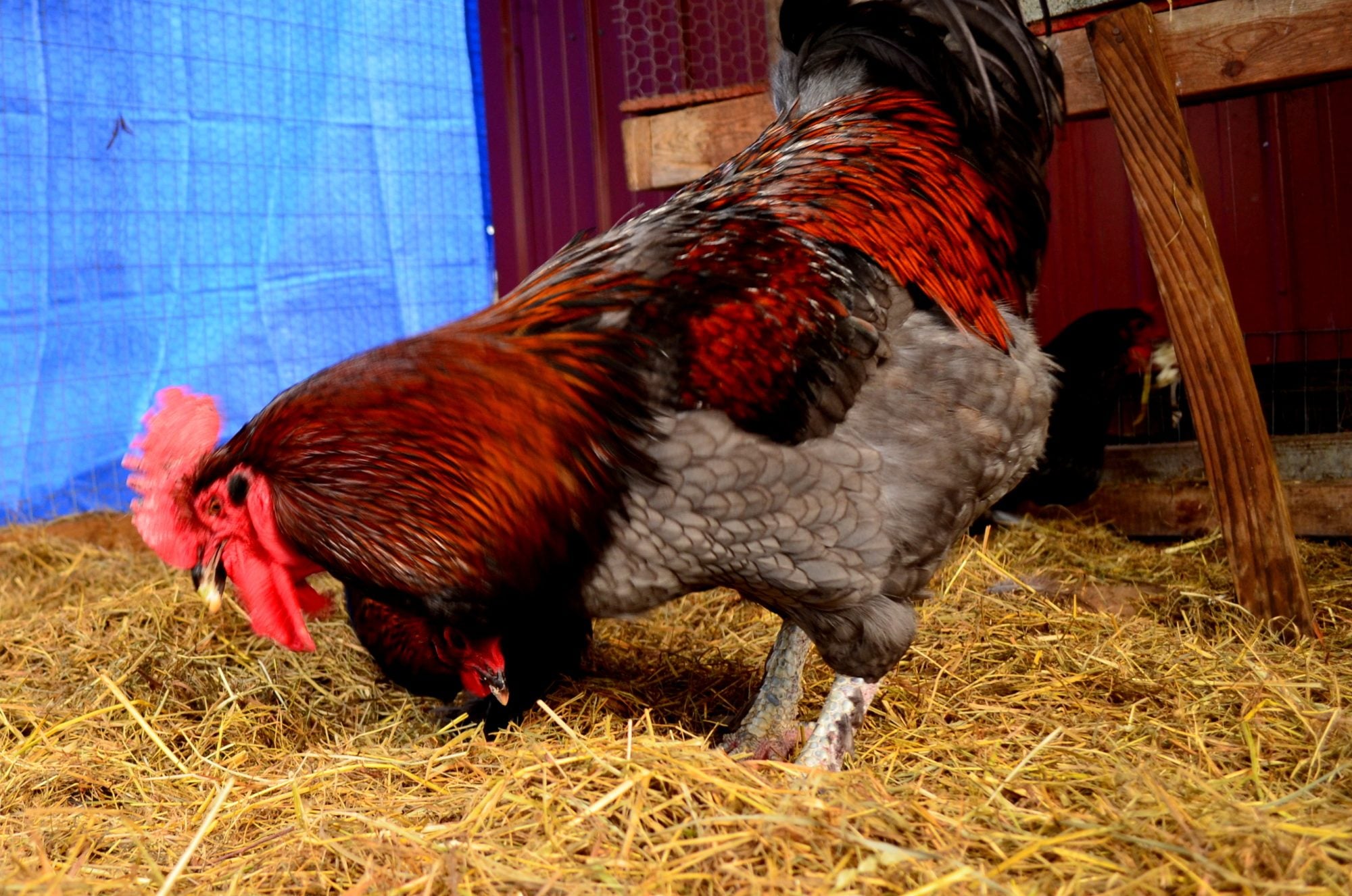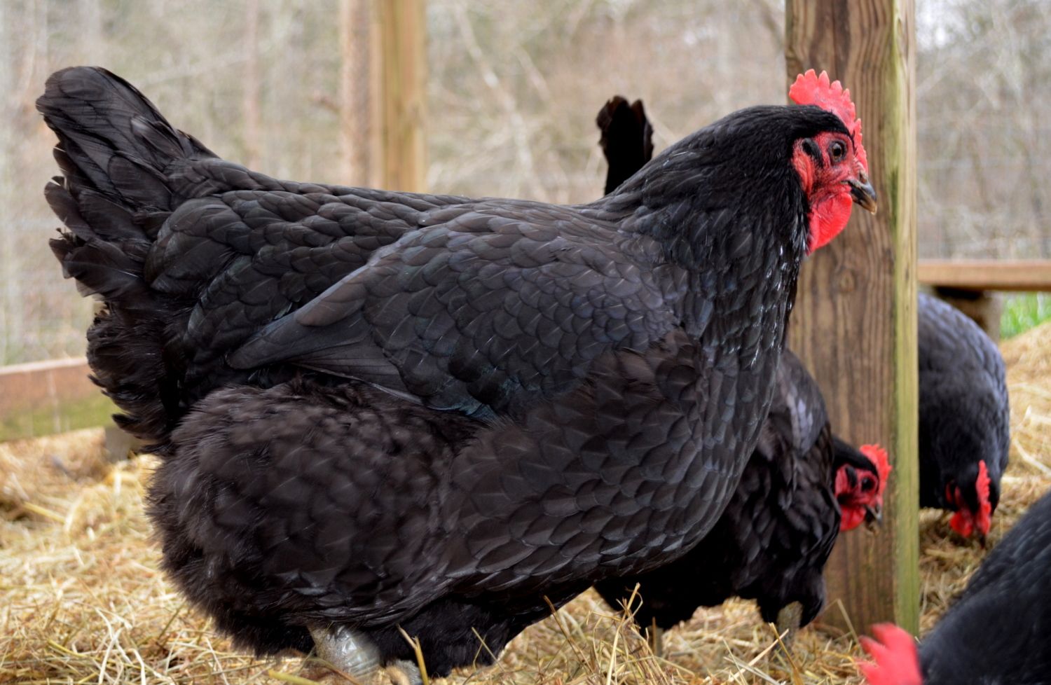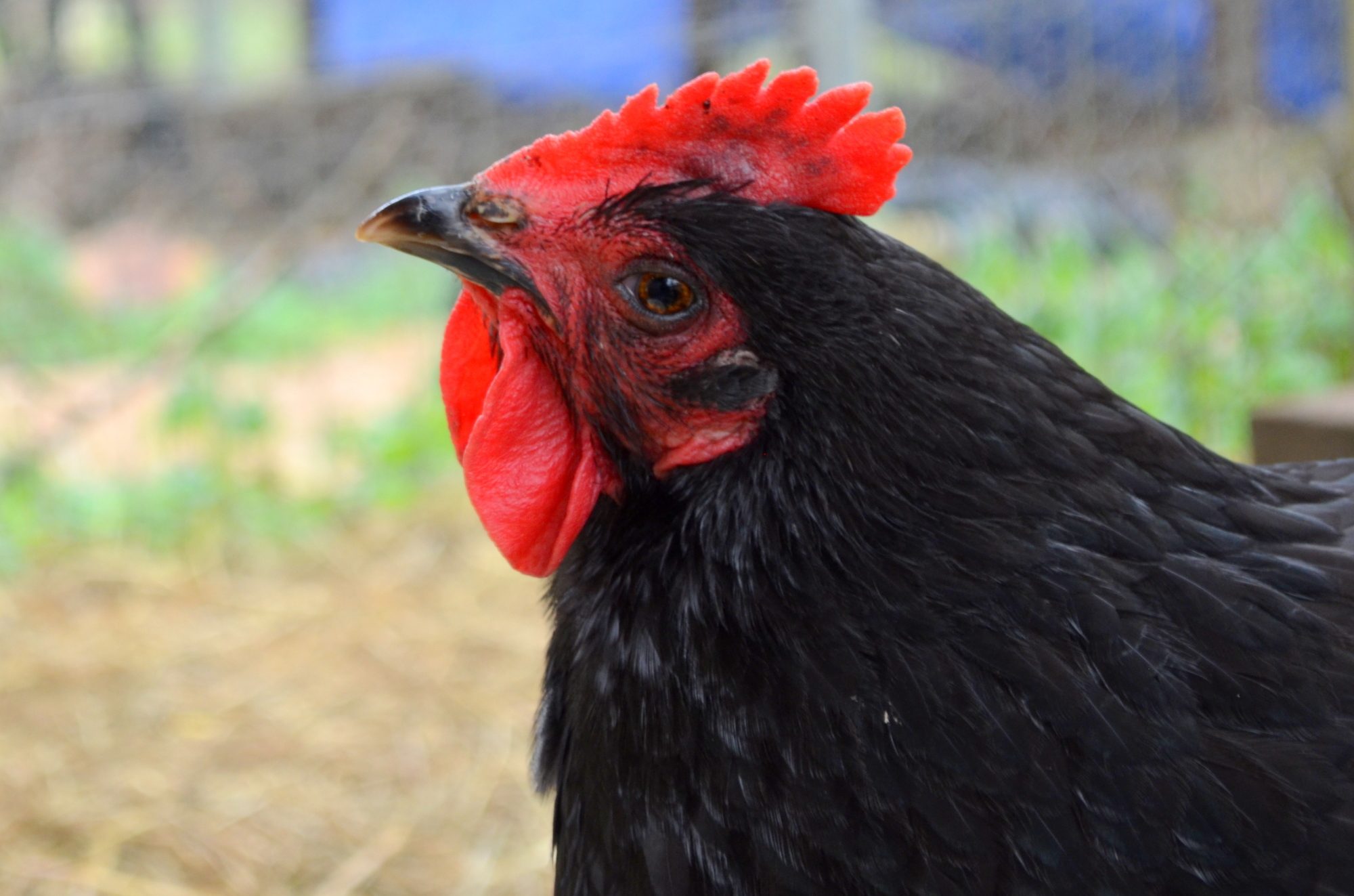 (hen on the right whispering) Gosh, Henry's wattles are as big as my face!
