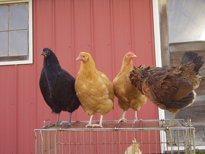 Daffodil: It servers her right for chasing us from the food and pecking our combs all the time. Let's really rub it in by perching over her.