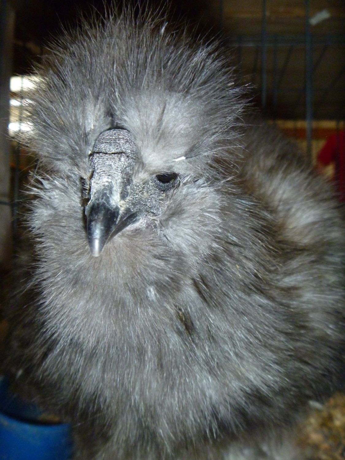 Moving on to a more pleasant subject. This is Eeyore. She suffers from manic depression. Her decline from normal society came when she discovered she is not a Las Vegas Show Girl. I tall happened when she was mistaken for a duster by the Farmer's hen. Since that fateful day, she has done nothing but mope around the barnyard with an obsessed notion she has to clean everything....even the coop. But now, here at Chalazae, she can peacefully live out her days, dusting the padded floors.