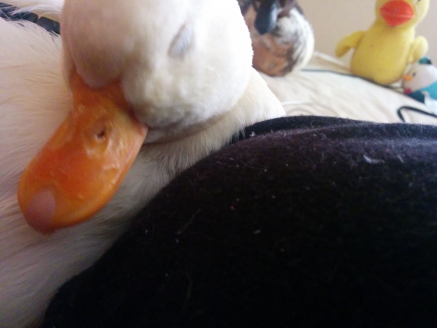 If it's all year then it's probably something else. None of my 13 girls have it and both of my drakes get like that seasonally.Not Wobs! The red color is definitely hormonal, but his bill has always been flaky like that. Oddly, Bean's is fine. I dunno if it's a white duck thing or what, I know unpigmented animals across all orders tend to have skin issues, and poor Wobs IS a teensy bit inbred given his champion bloodline.