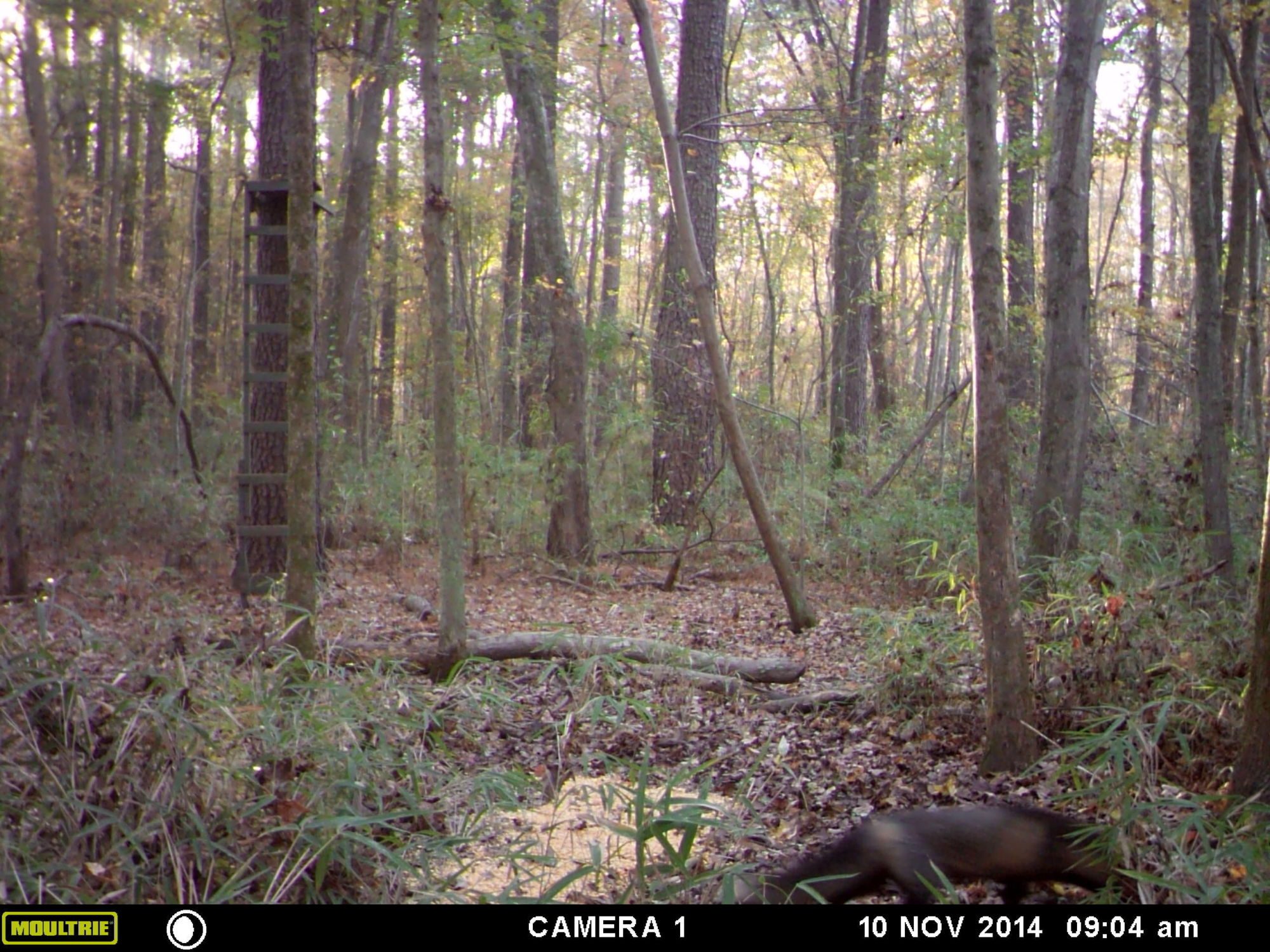 Looks like a fisher catWhen I went out a few mornings ago, I found what was left of 2 of my Guinea's laying on the ground approx. 6 ft from their sleeping spot. They didn't sleep in the coop with the chickens. They have slept in the trees most of their lives. Anyway, the only thing left was 1 head, 2 beaks, tons of feathers and what appeared to be intestine and it's contents. Our land borders the woods and our chicken coops sit to the back of the farm, closer to the woods than to the house. I have also noticed it looks like something has been walking around on top of the runs. It is made up of some sort of chicken wire fencing and there are areas that seem sunken in. Like something heavy has been walking on it. I haven't seen any tracks anywhere, but I know our woods contain raccoons and foxes. It's possible we could have bobcats, not sure about coyotes or hogs. However, there have been some spotted in our county. We put up a camera back there and have some pictures of both raccoons and foxes, but we can't seem to identify what this one is. I was hoping you guys could help me identify what could have killed my guinea's and could it have been "this thing" in the photo? Would also like to identify "this thing" in the photo so I will know what I might be dealing with. Thanks!