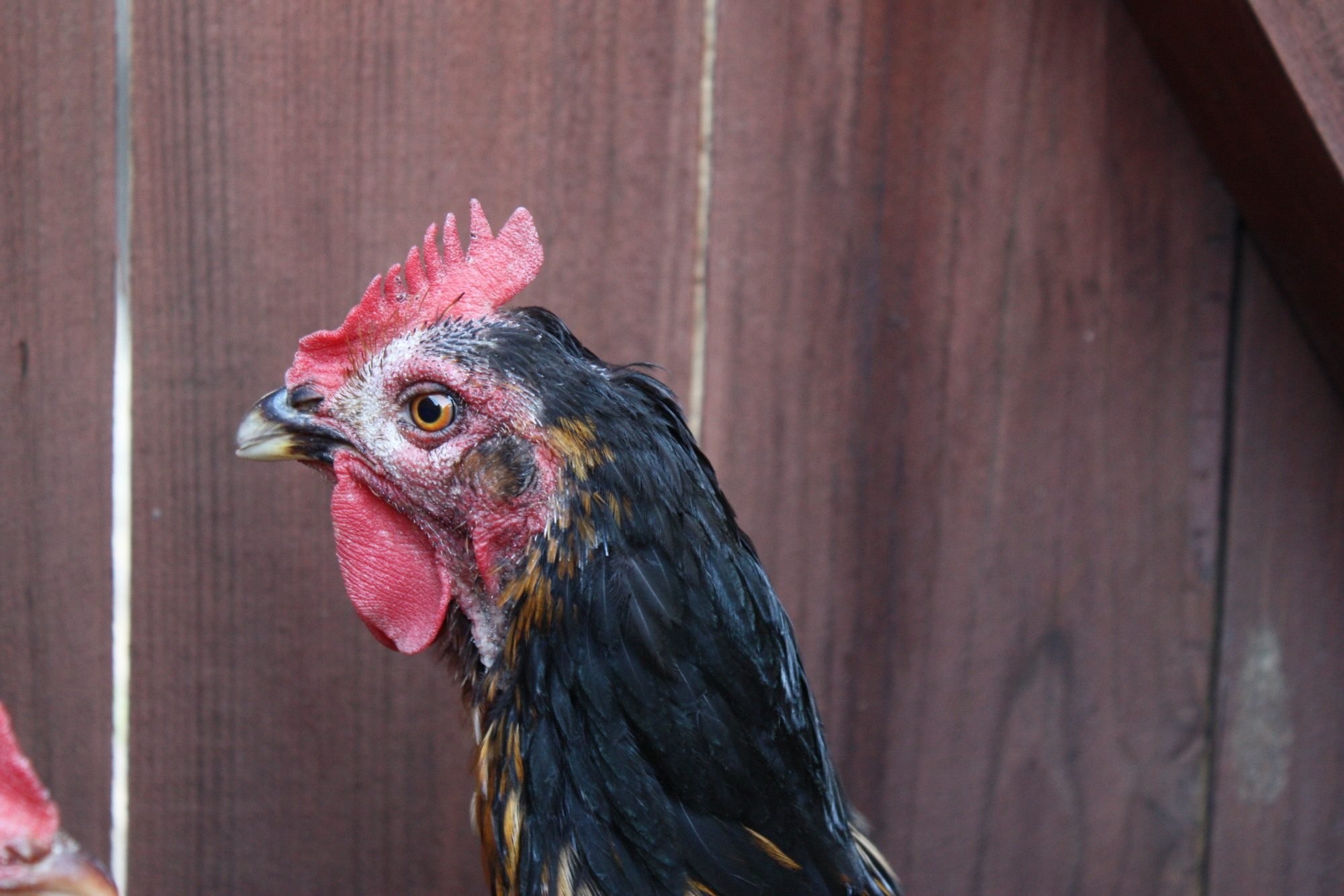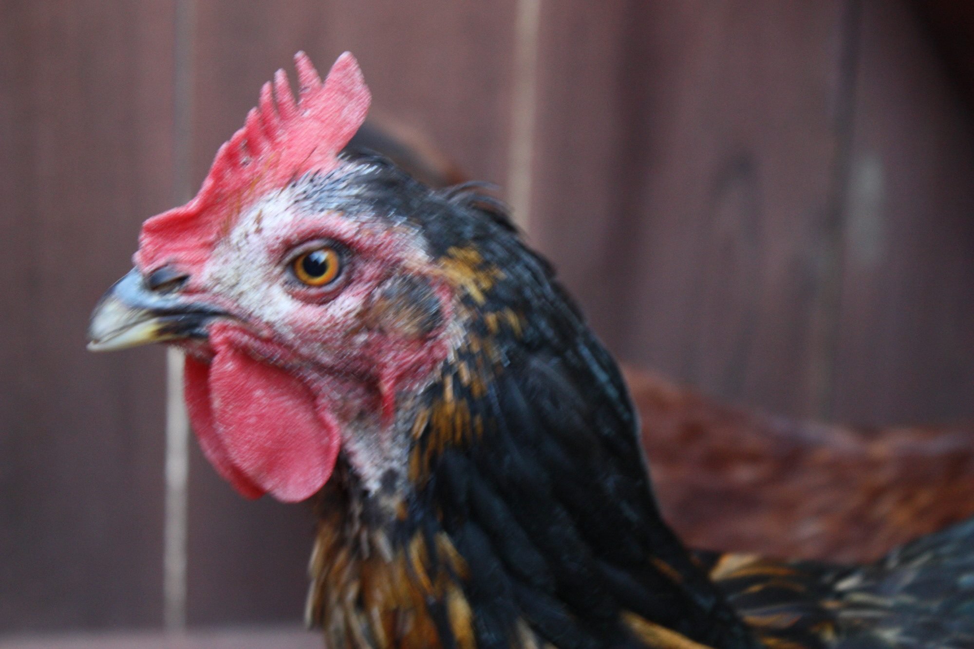 This is Cutie, I think she is 2 years old. I adopted her from my local animal shelter a year ago. She has been a great hen that lays eggs regularly. She is a heavy breed, I think a Barnevelder, that eats all the time!!!