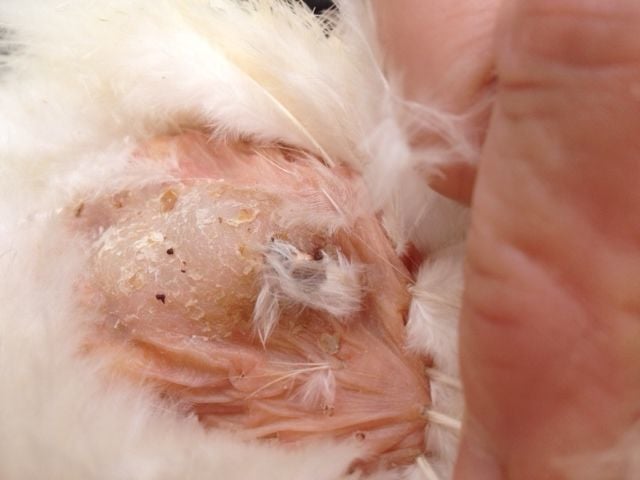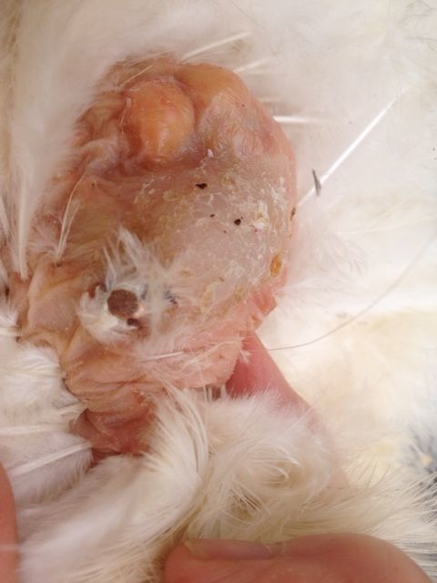 All my hens get organic feed and free range. So just guessing... tumor?? Do chickens get hernias???