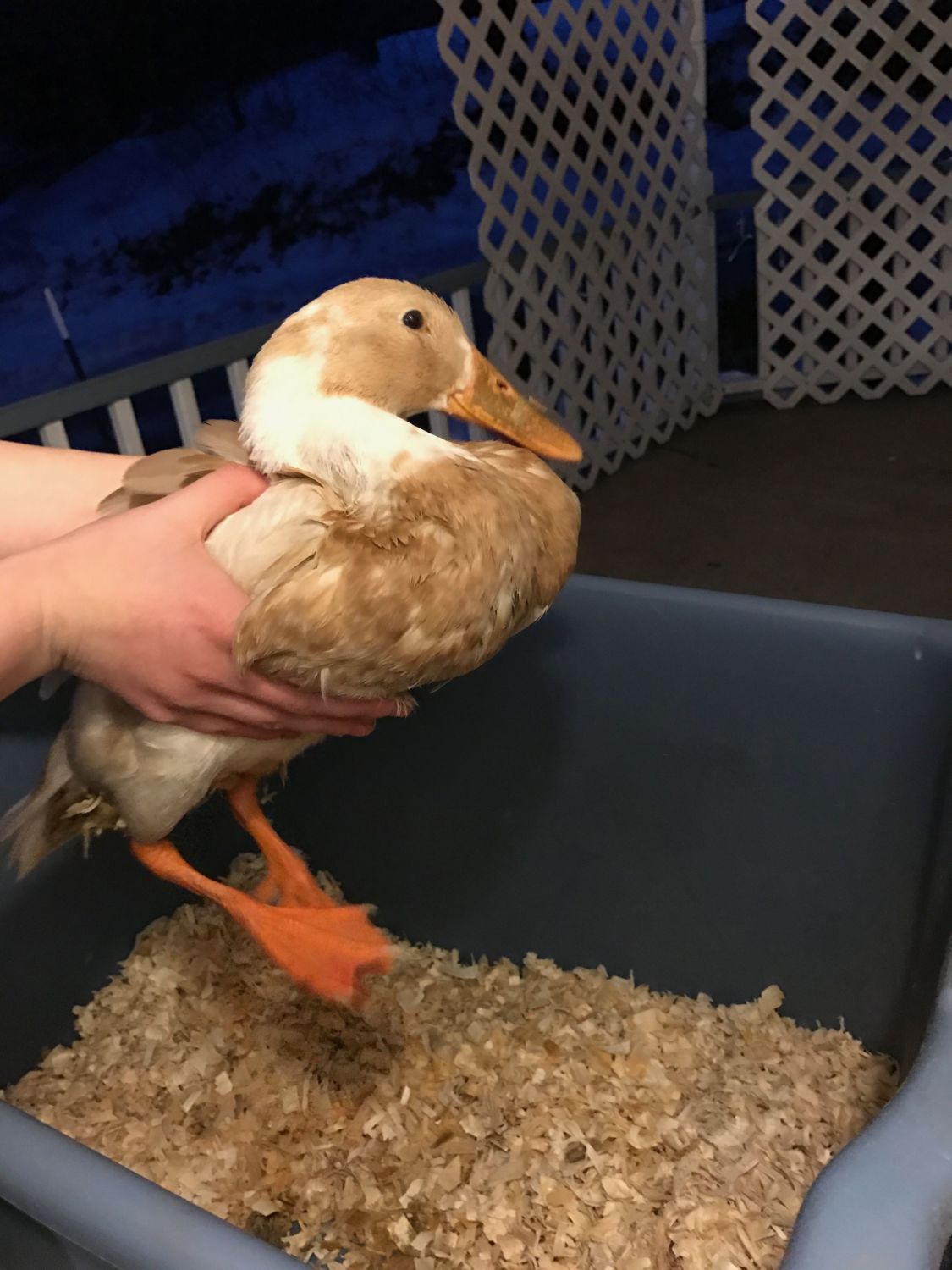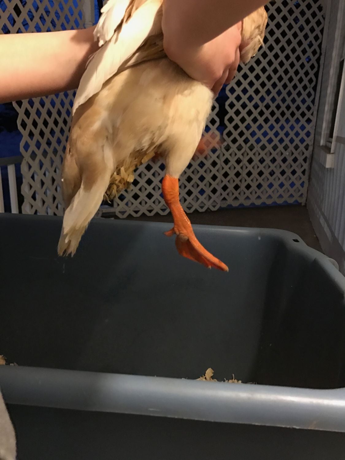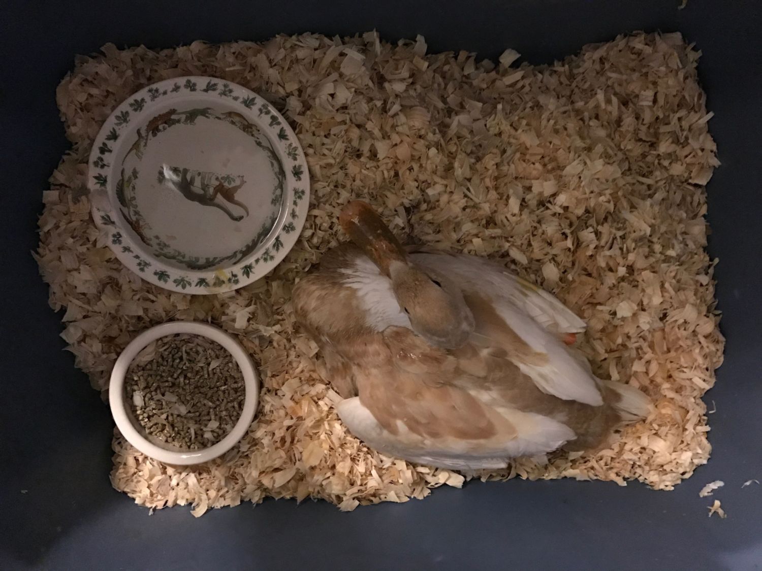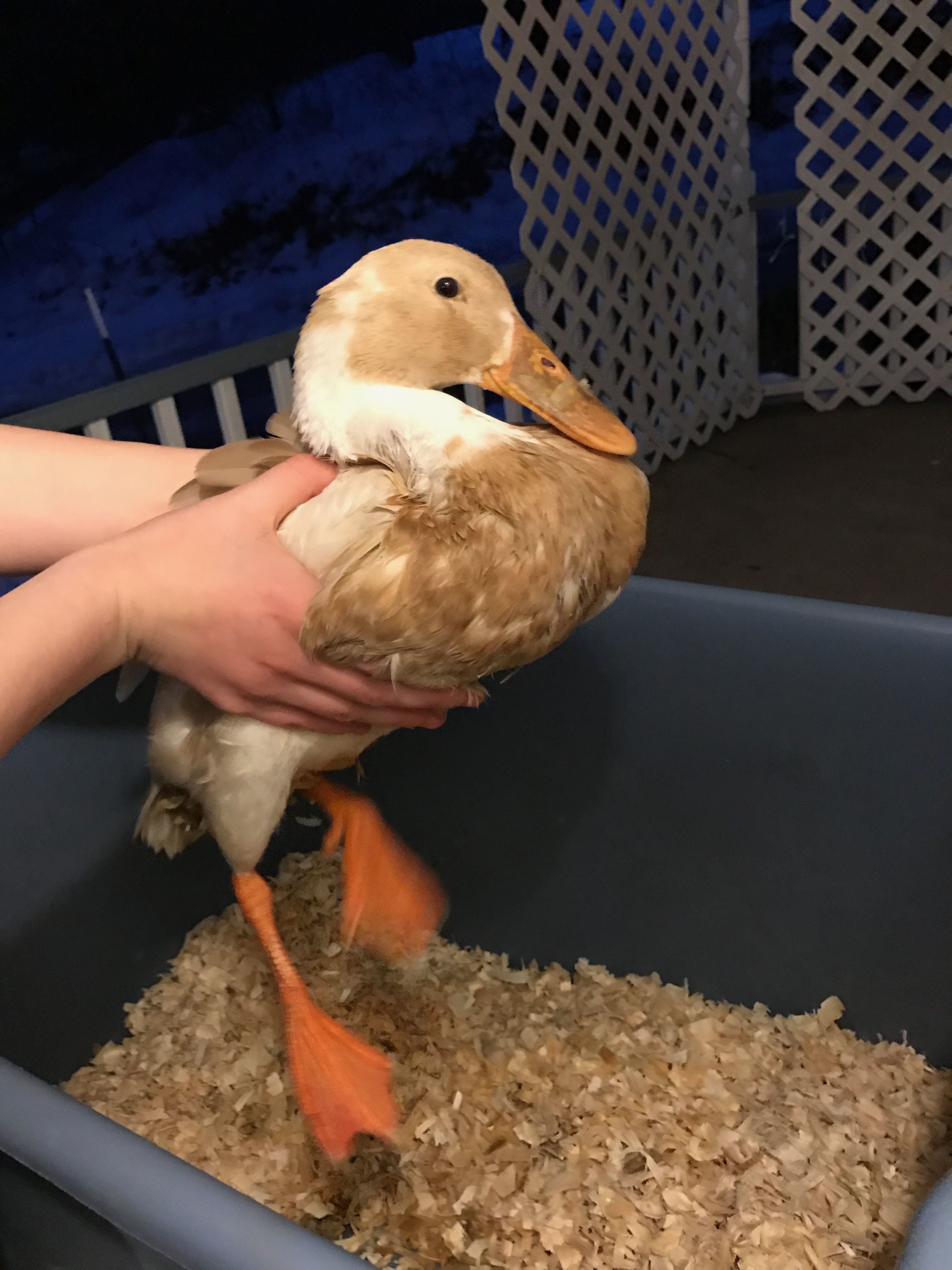 In June of 2016, I bought 13 Indian Runner Ducks. They were all fine, no problems, but then all of a sudden the only male I purchased got a limp. A few days after, he couldn't walk. He was having a hard time getting to the food & water so I made a little tuppleware container filled with pine shavings & his own food and water bowl to see if he could heal. He didn't- it got worse and worse and finally we made a decision to cull the duck. It was really really sad but we couldn't see him suffering anymore.
