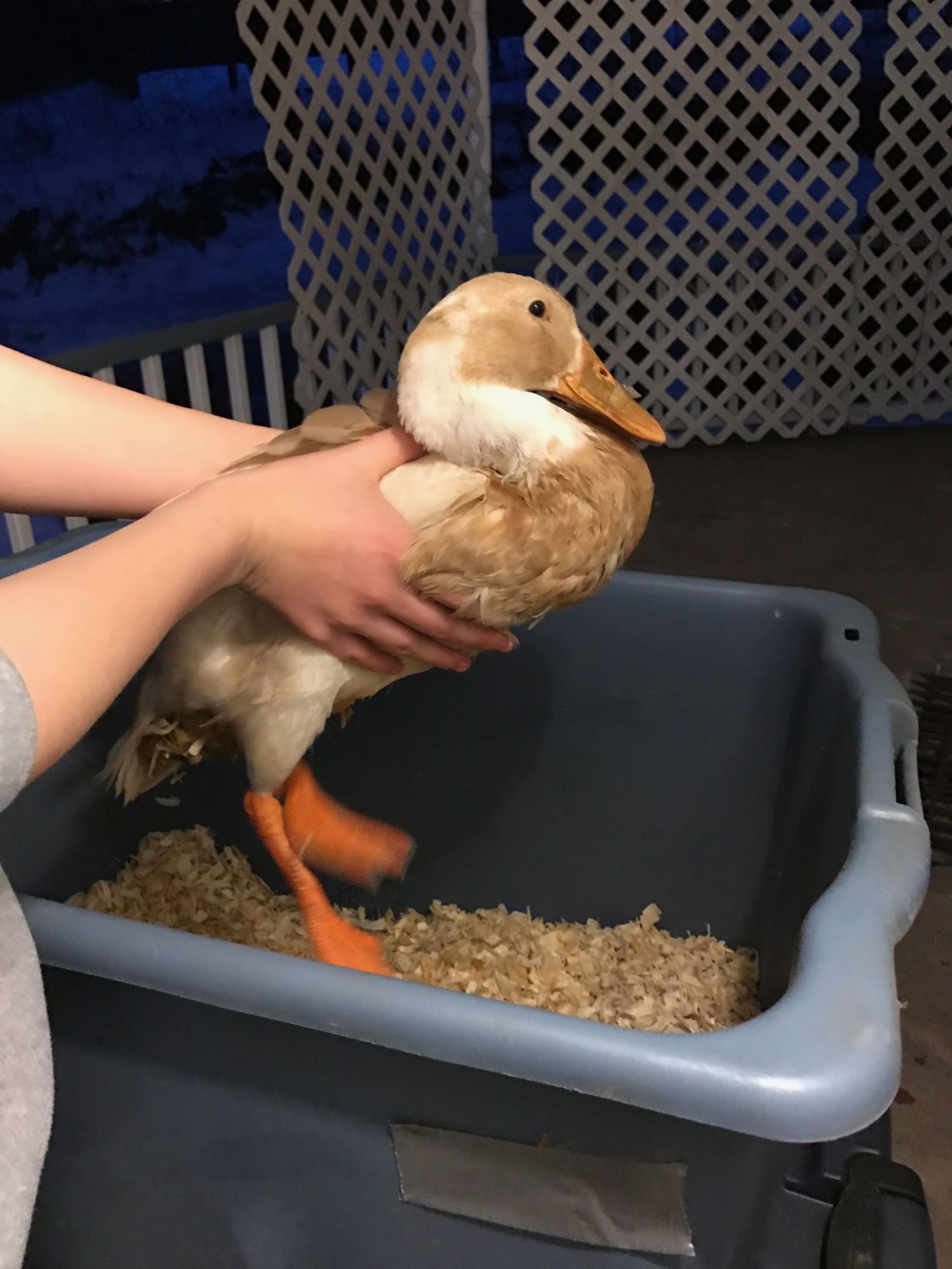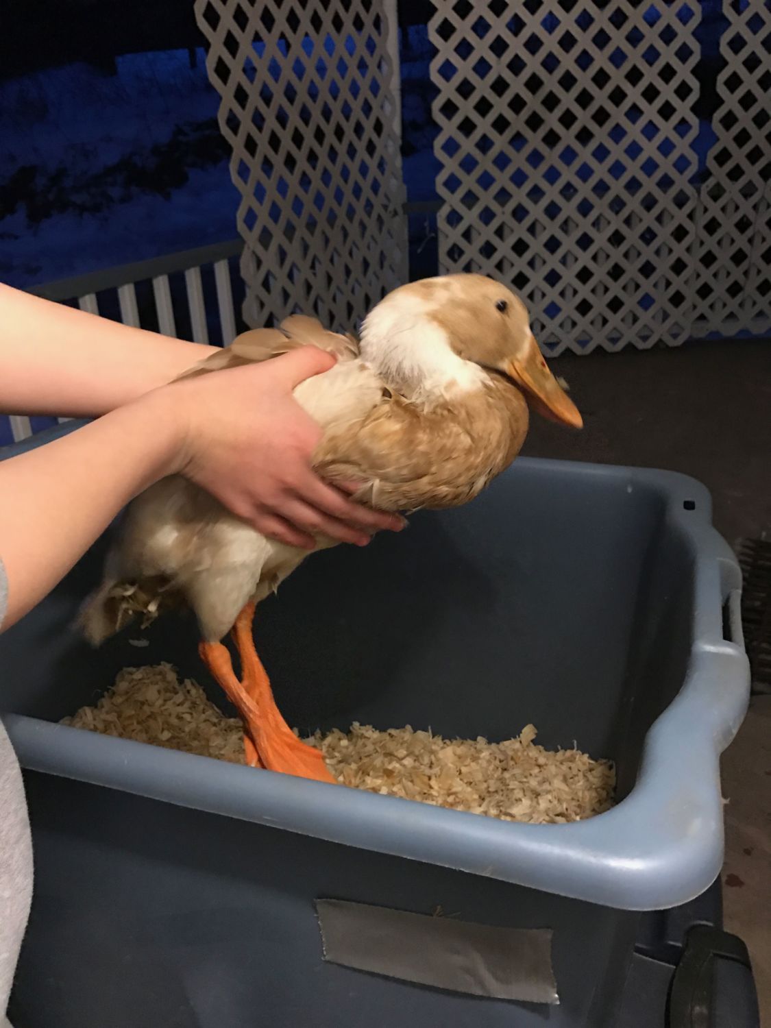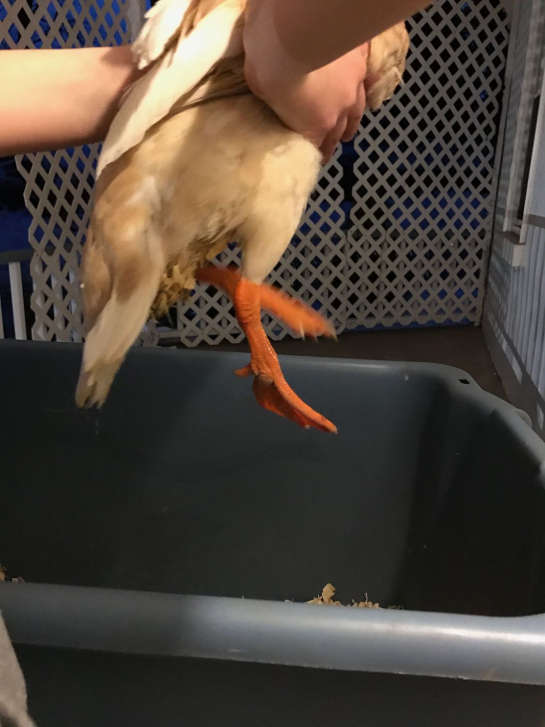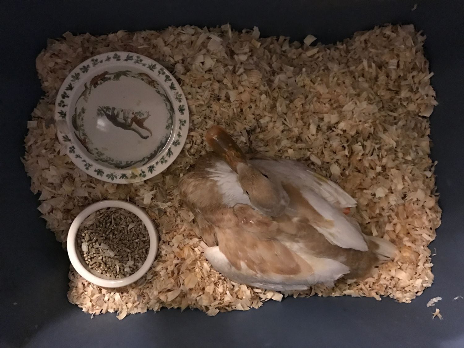 In June of 2016, I bought 13 Indian Runner Ducks. They were all fine, no problems, but then all of a sudden the only male I purchased got a limp. A few days after, he couldn't walk. He was having a hard time getting to the food & water so I made a little tuppleware container filled with pine shavings & his own food and water bowl to see if he could heal. He didn't- it got worse and worse and finally we made a decision to cull the duck. It was really really sad but we couldn't see him suffering anymore.