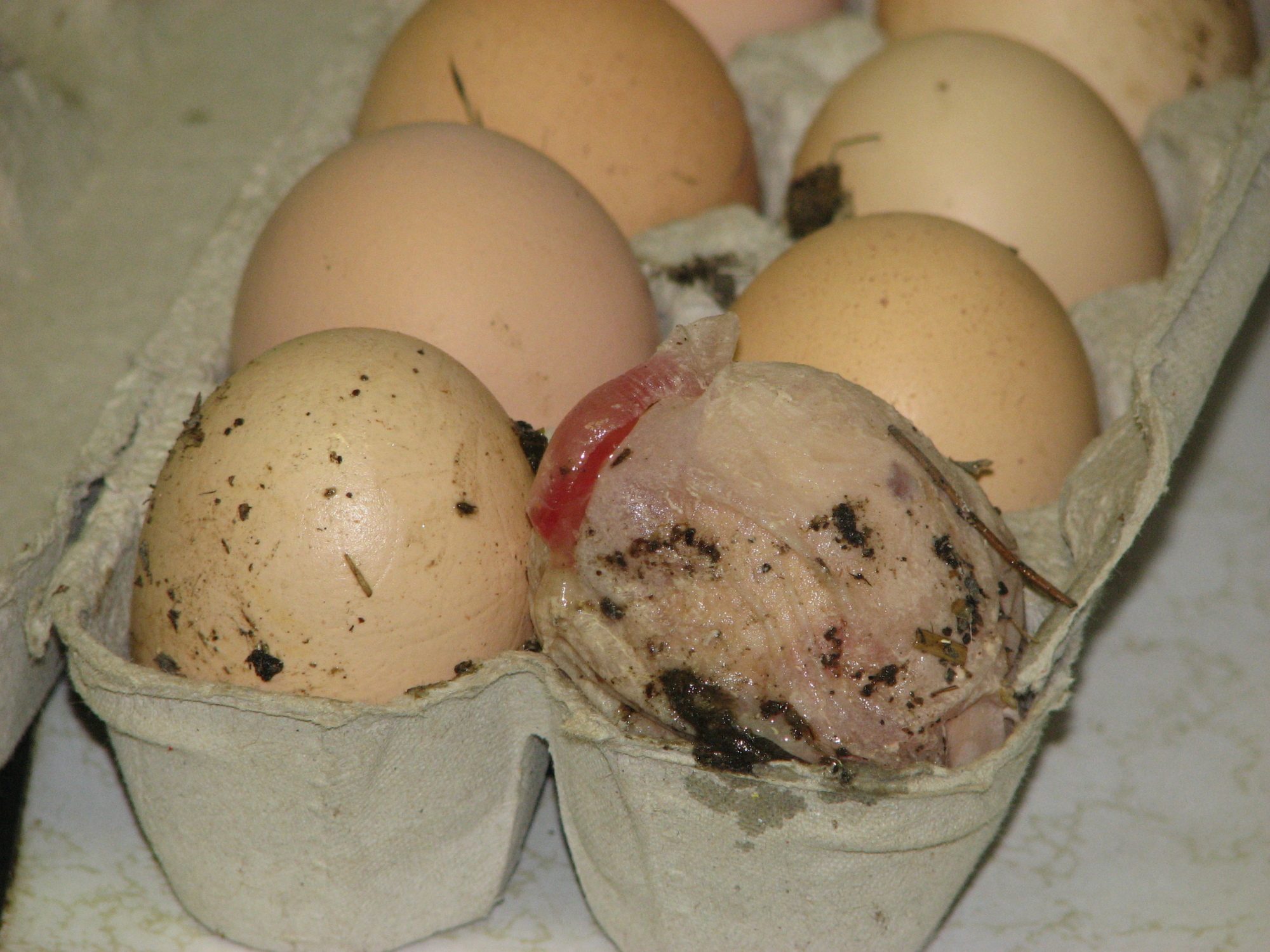 When I was collecting the eggs, I reached my hand into one of the nesting boxes and once my hand touched something very strange, I pulled it back out. I looked inside and saw a very unusual egg. I picked it up (which was extremely heavy), and put it into the egg carton. I brought it inside of the house. All of my girls appear healthy. It is very cold outside, below freezing. But the chicken houses are insulated and heated. Thanks!