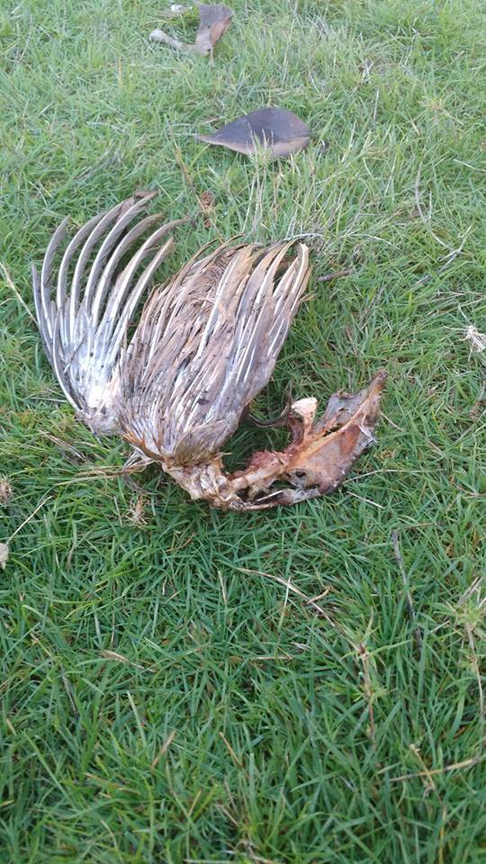 As you can see, the carcass has been picked clean. Even the legs and head are missing... All that appears to remain are the wings.