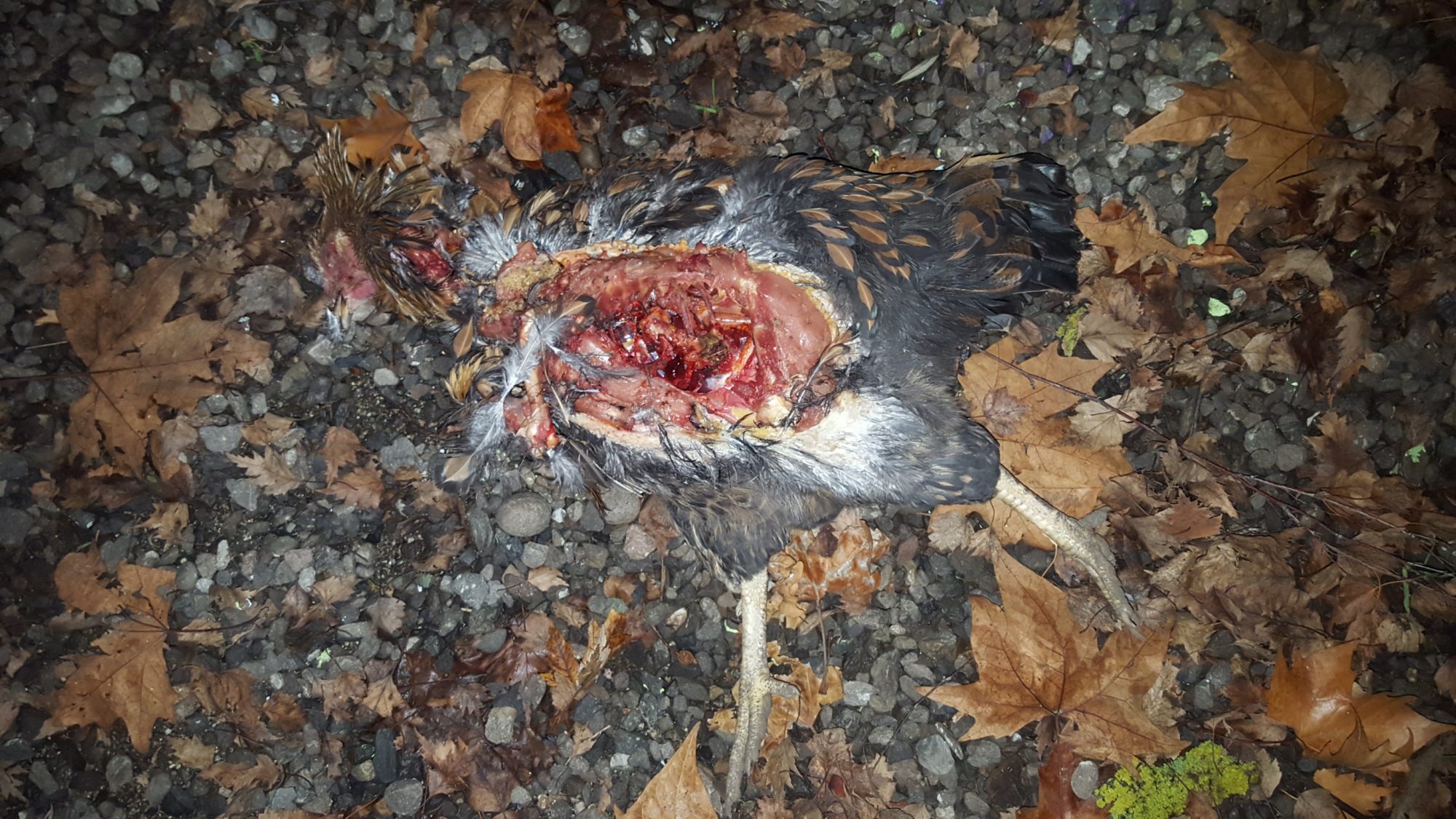 Hi, sorry this photo might be a bit graphic but this is the third chicken we have lost to a mysterious predator in two weeks and we are down to only 4 chickens now.