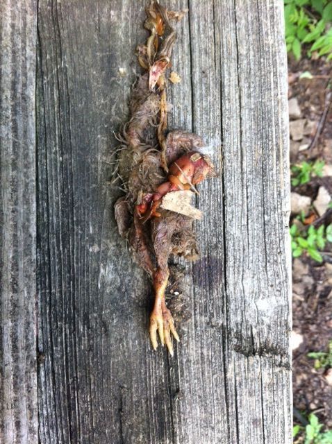 The way the victim was handled it looks like a young raccoon or two that was not overly hungry did the deed. The like to role victim around slobbering over it as gnawing.