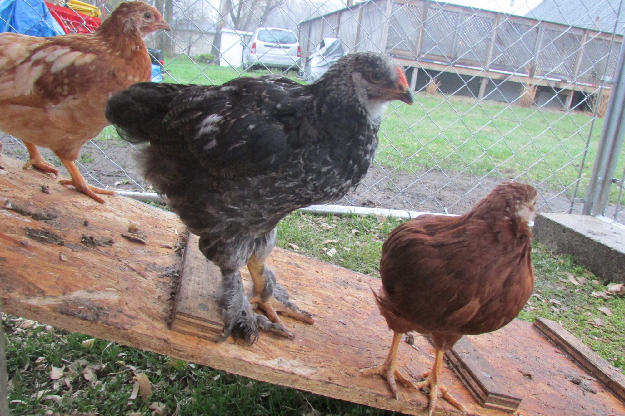 so I have 6 chickens and we got them march 19, when they were a few days old so that makes them a month. and we got them at tractor supply and they didn't have listed the exact breed they are, they just had a list of what they could be. so any breed you think they are would be helpful! also if you are able to tell the gender im pretty sure I have 5 females and one male but I could be wrong.. lol