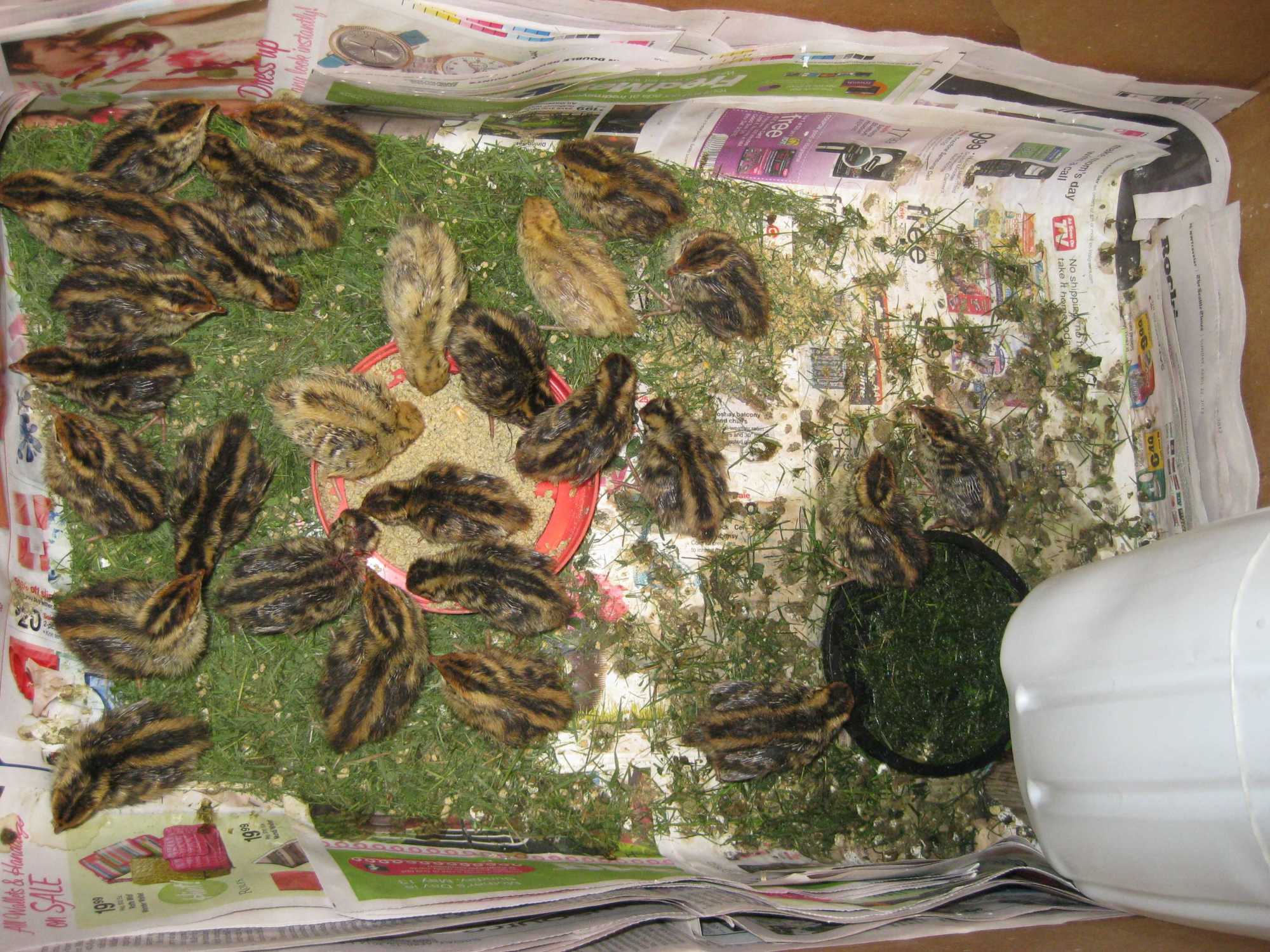 BTW, if it were me, I'd pull the grass out. Their crops aren't developed enough to handle it yet and you can get a problem know as sour crop or rot crop. The grass will get caught up and not digest, fermenting away...the outcome is not pleasant.