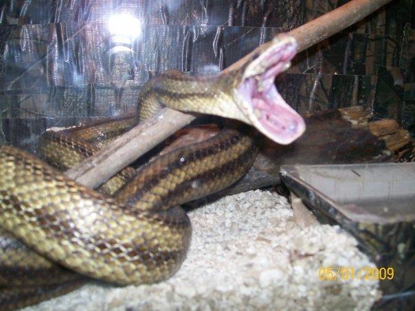 If you see one again, could you get pictures of it?Its not a Rat Snake, it is a Poisonous "Clock" because during the seasons a mark on its belly goes clockwise, spring 12:00 summer 3:00 fall 6:00 and winter 9:00, a clock snake, it is not a rat snake it will kill your chickens, in the winter one was found dead, they had studied it, and they found recent chicken bone grinds.