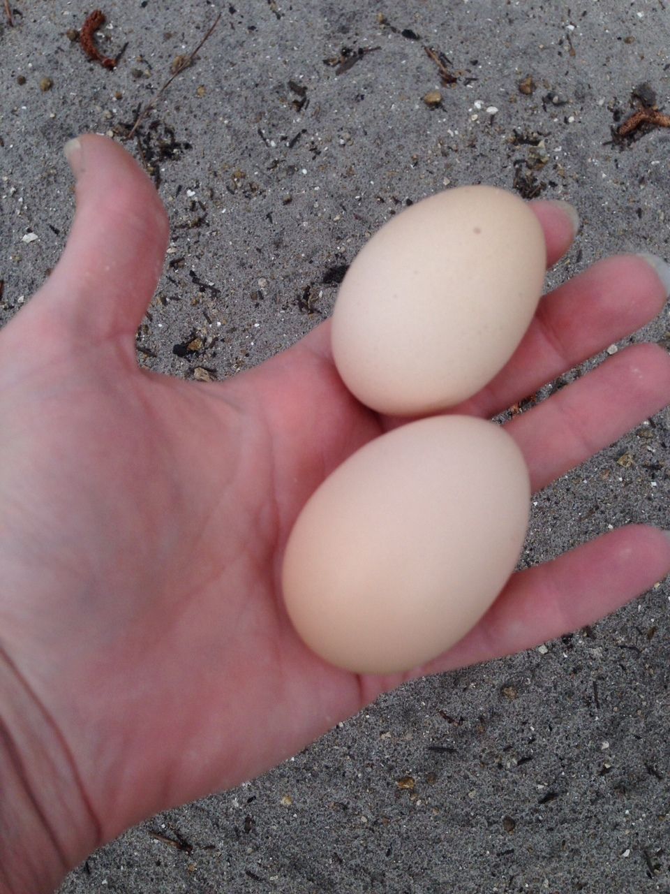 One of these eggs is hers and one belongs to my blue cochin...not sure which is which but they basically look the same color.