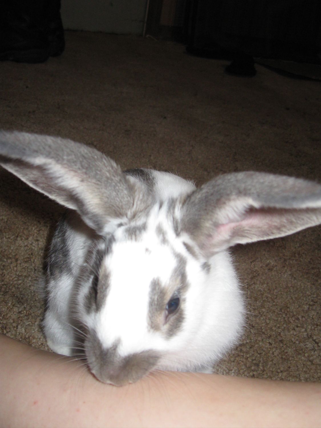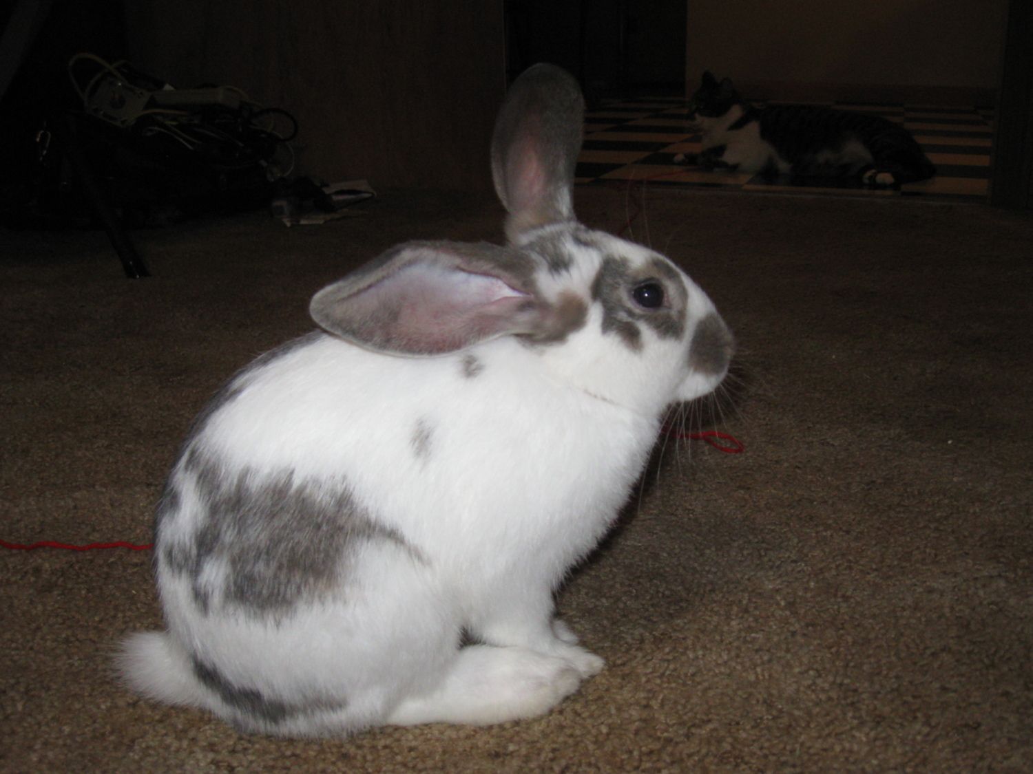 I've been looking at possibilities and it seems like his markings fit the checkered giant the best. Is that a good guess, or am I way off the mark? He has a very pronounced arch and his ears are big, but they don't flop over. Not sure what else will help in figuring out his breed. If you need more pictures, I will try and get them (as long as he stays still for 30 seconds...), I just need to know what angle/comparison. Thanks!