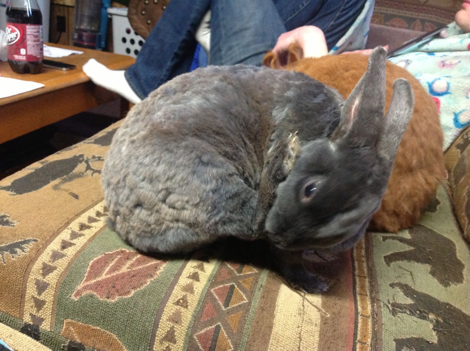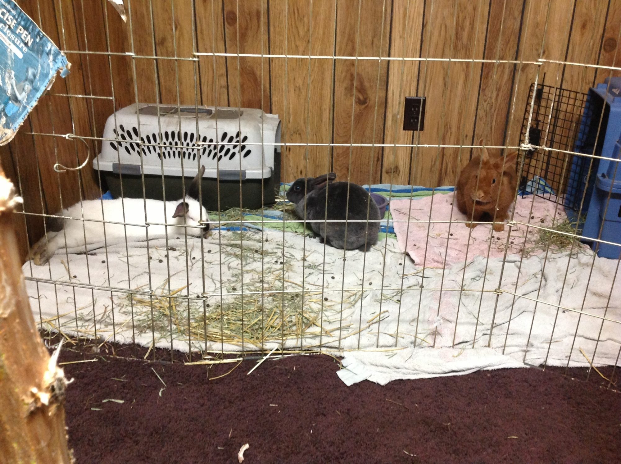 They appear to be a dwarf breed, possibly a cross of two or more of the small breeds - definitely NOT Mini Rex, though (they don't have Rex coats). They also look like adults, and since you obviously have the buck in with the does, you may well have babies on the way!I just got 3 rabbits . A surprise from my husband. I don't know their breed or age. any ideas?the black one in the back is male the other two female. Can I keep them in with my silkies? Any info will help me Thanks