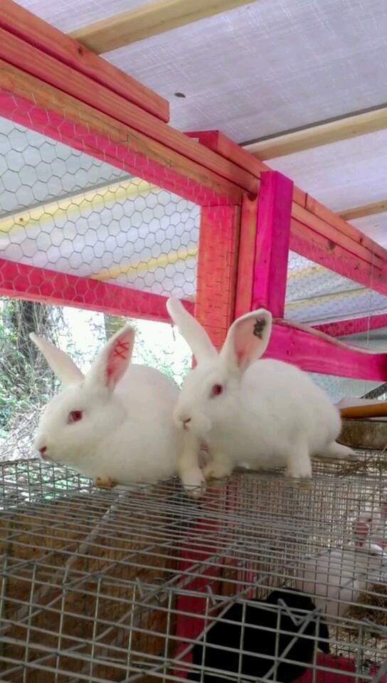 I've got a few things down so far, lol breeds I need to study more, I researched the NZs for us, wasn't expecting orphans tho lol I guess all us keepers should huh? The rabbit with the blue ear mark is clearly a youngster, the one with the red mark has more mature proportions. Stay with rabbits, and you'll learn to recognize things like that even in mixed breeds. Definitely not a Dwarf, or even a Dwarf Cross. If I had to go with one breed, I'd say Florida White, for sure. Supposedly, they were originally bred to be lab animals; being only half the size of a NZ, they don't eat as much. But they make perfectly good meat rabbits, though with a mature weight of 4 to 6 pounds, it takes a little longer to get a fryer big enough to slaughter.