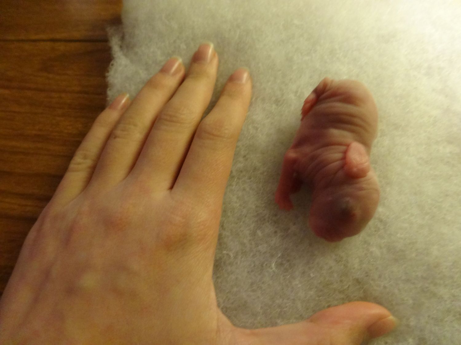 Agreed, breed her back after a day or so. She will be fine if you can get some litters out of her. Make sure she has a buck with good swimmers and she gets hit a few times so you can try to ensure more, smaller kits. I never do a final count on the number of bunnies I get until the next morning. Too many "I have seven babes... I mean, uh,,, 11 babes? Those weren't there before...!" moments. XD That kit looks about the size of one of my NZW kits... So yeah, pretty big!
