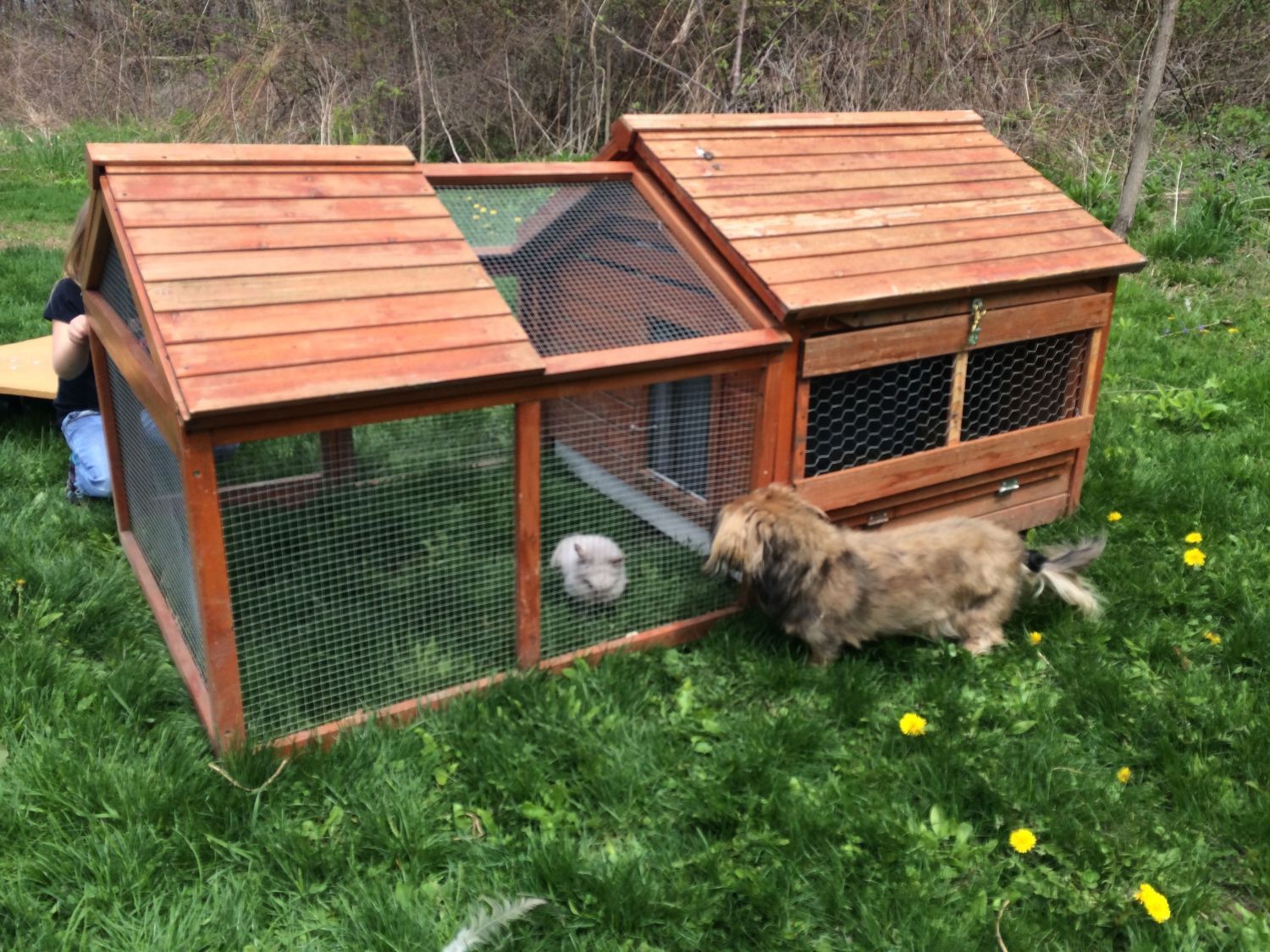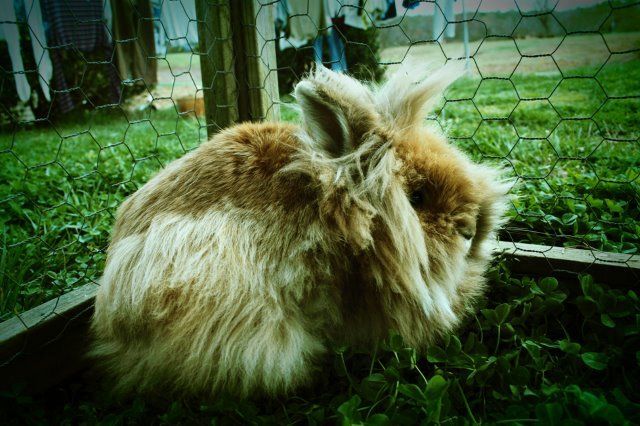 My little lionhead went outside last night since it's finally warming up here. His "cage" got moved to the top of the yard today and he is loving life!