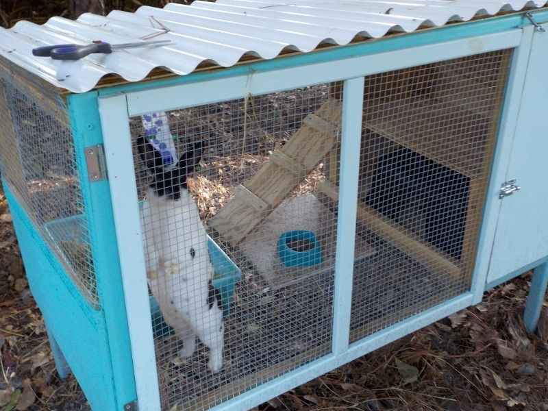 I built new hutches for my mini rexes this week, The girls who had been living together were fighting, so they had to be seperated, and the buck couldn't stay inside b/c he can smell the does and he sprays. Now everyone is happy in their new houses! They have a tractor that they each get play time in, but I want to put in permanent play yards so that they get plenty of outside time, next project!