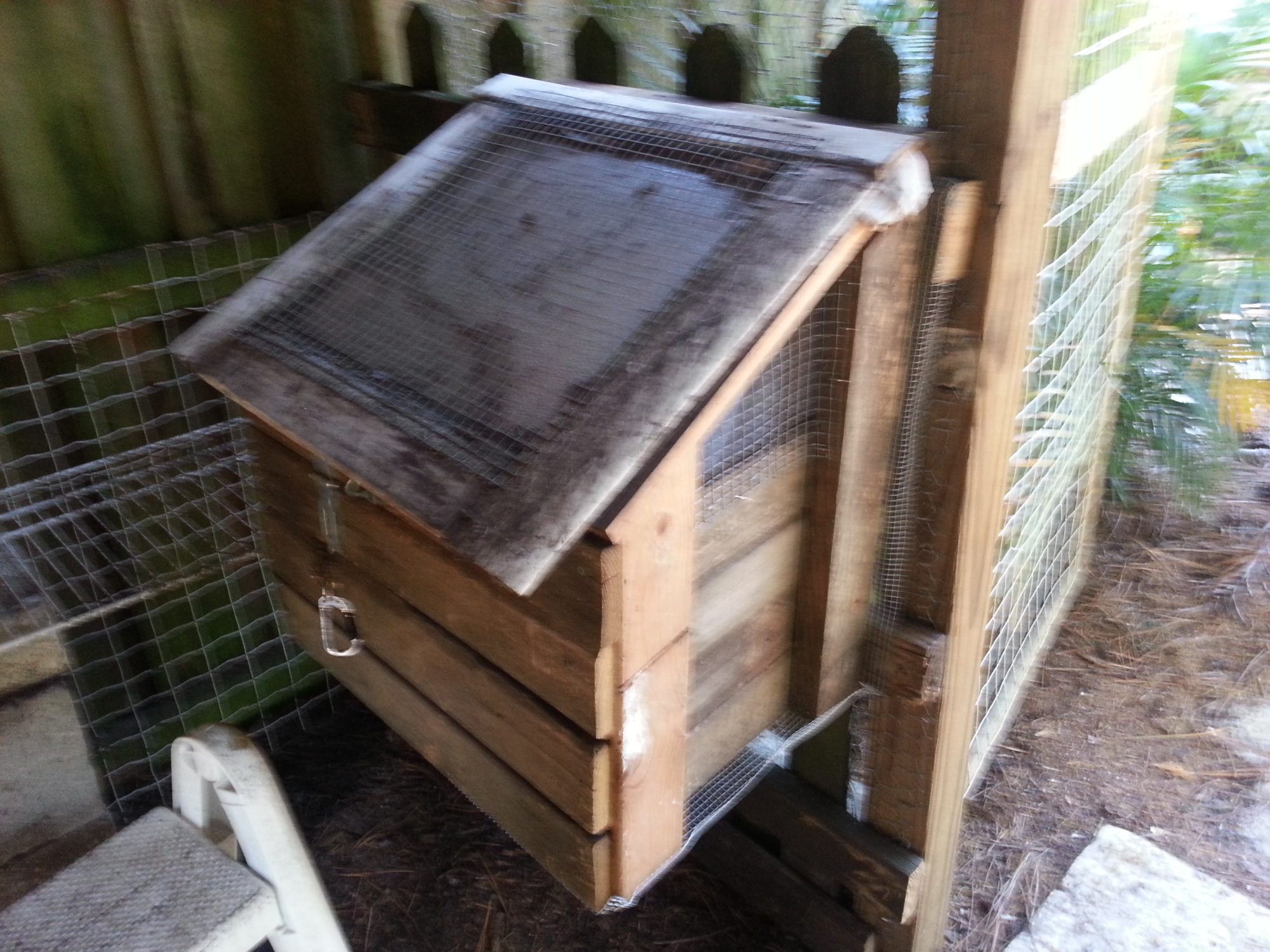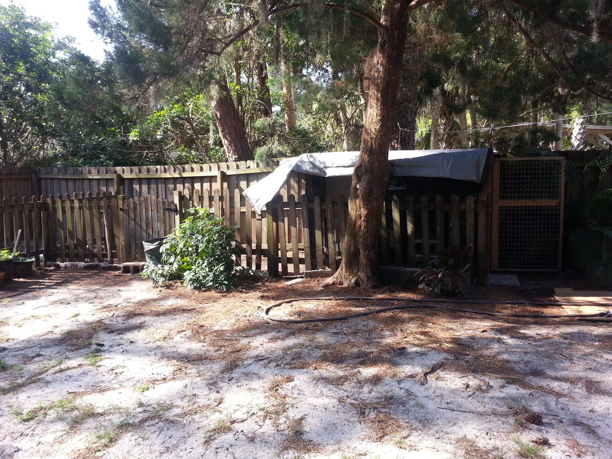 I wish I had just made a big coop to start with. Just a big roost bar inside a very safe enclosure. But I like that the openness gives fresh air, especially in summer, and that the tarp provides shade, wind, and rain protection.