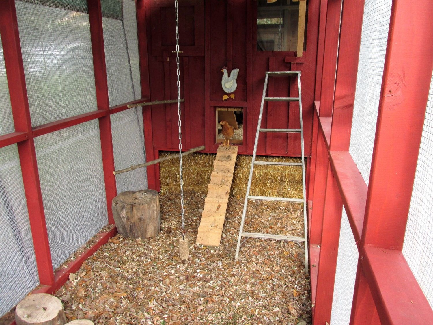 the floor of run with the leaves, pine needles, pine shavings