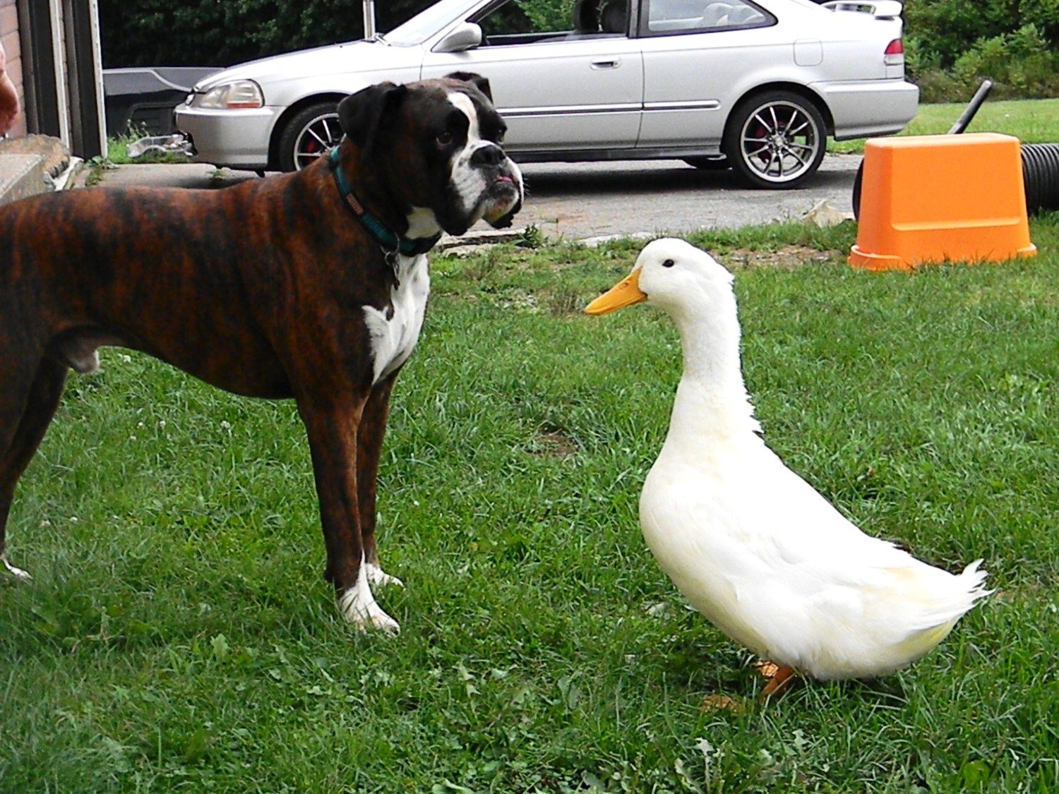 Hello, being a first timer with pekin ducks myself this year, it has been a interesting adventure. My pekins are about five to six weeks old now and were just put outside about a week ago. They grow amazingly fast in just a short time span, and because of this is why I was forced to put them outside asap. I am learning day by day as to what is working and what seems to be a problem. I did start them with chick starter based on what I was told at the time of purchase. They are still eating this even though they have now finally turned more white in color. They have learned to get fresh water from a 5 gallon bucked fitted with water nipples, but since they have been moved outside, they use the kiddie pool water and a separate water bowl placed by their feed dish for drinking instead. I wanted a bucket so as to keep their water clean while we were away. I have a sneaky feeling that they will only use the bucket if I remove all other water sources. The soft kiddie pool was a freebie we found in our field after winter. I wasn't sure how long it would last after seeing they have toenails at the end of their webbed feet. I will most likely have to replace it soon as I do fill it up every day for them to play in now. I did put in some pavers for easier access in and out but they prefer to dive in from the sides of the pool instead. The water never stays clean very long, but watching them play in it is worth the effort to refill it constantly. I was given some corn mash from someone who said they would eat this also. This person bought it for a pig they were going to purchase, but later changed the plan. I give them half of the corn mash and half of the chick starter which seems to be consumed at their liking. They also have access to grass & bugs in their pen. Because of some extremely cold temps at night, I have had to herd them into the dog house (with straw) at night. I covered the entrance with burlap and they seem to stay in all night until morning, when they venture out on their own. Last night I left them to decide to go in on their own. Whether they did or not I have no idea. We did get some rain during the night and when I checked on them early this morning while it was just beginning to get light, they were both sitting in the pool in the moonlight. I put them in the doghouse three or four nights in a row by hand, so I am hoping they got the point. I did read somewhere else that they will eat fruits and vegetables, so maybe garden scraps will be next as the season unfolds.